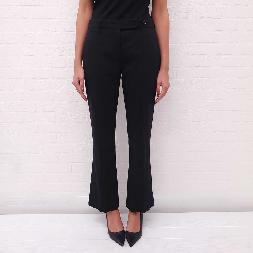 PRADA BLACK FLARE WOOL TROUSERS WITH LOGO DETAIL - SIZE 42