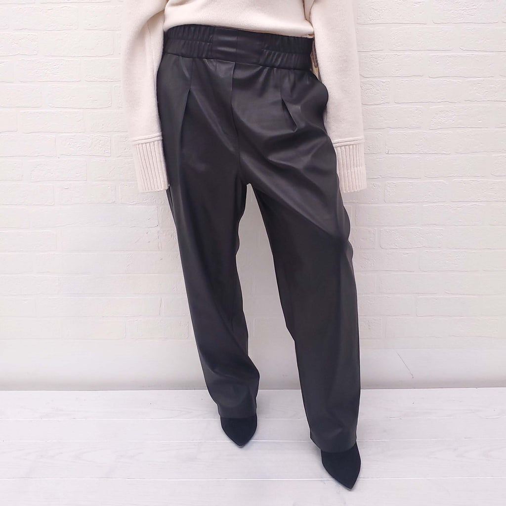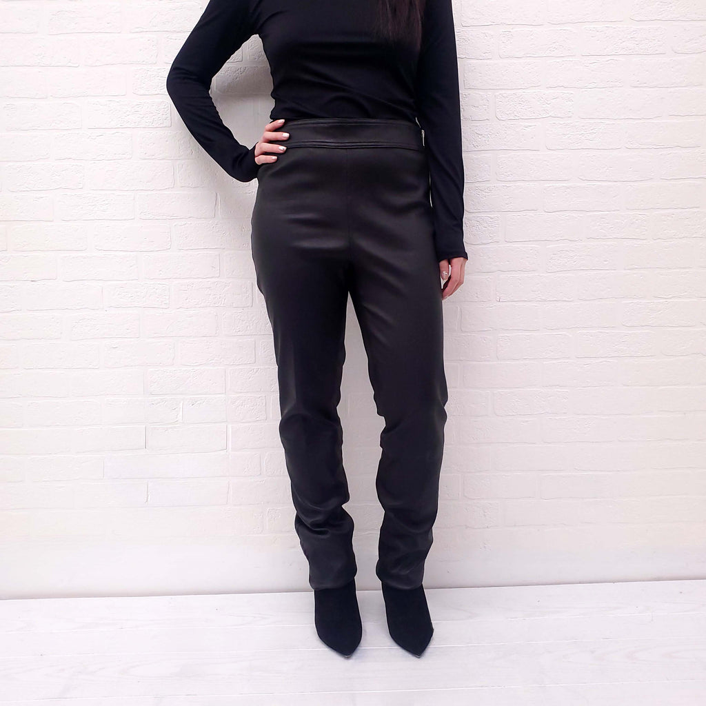 BROCHU WALKER BLACK VEGAN LEATHER STRETCH TROUSERS - SIZE L