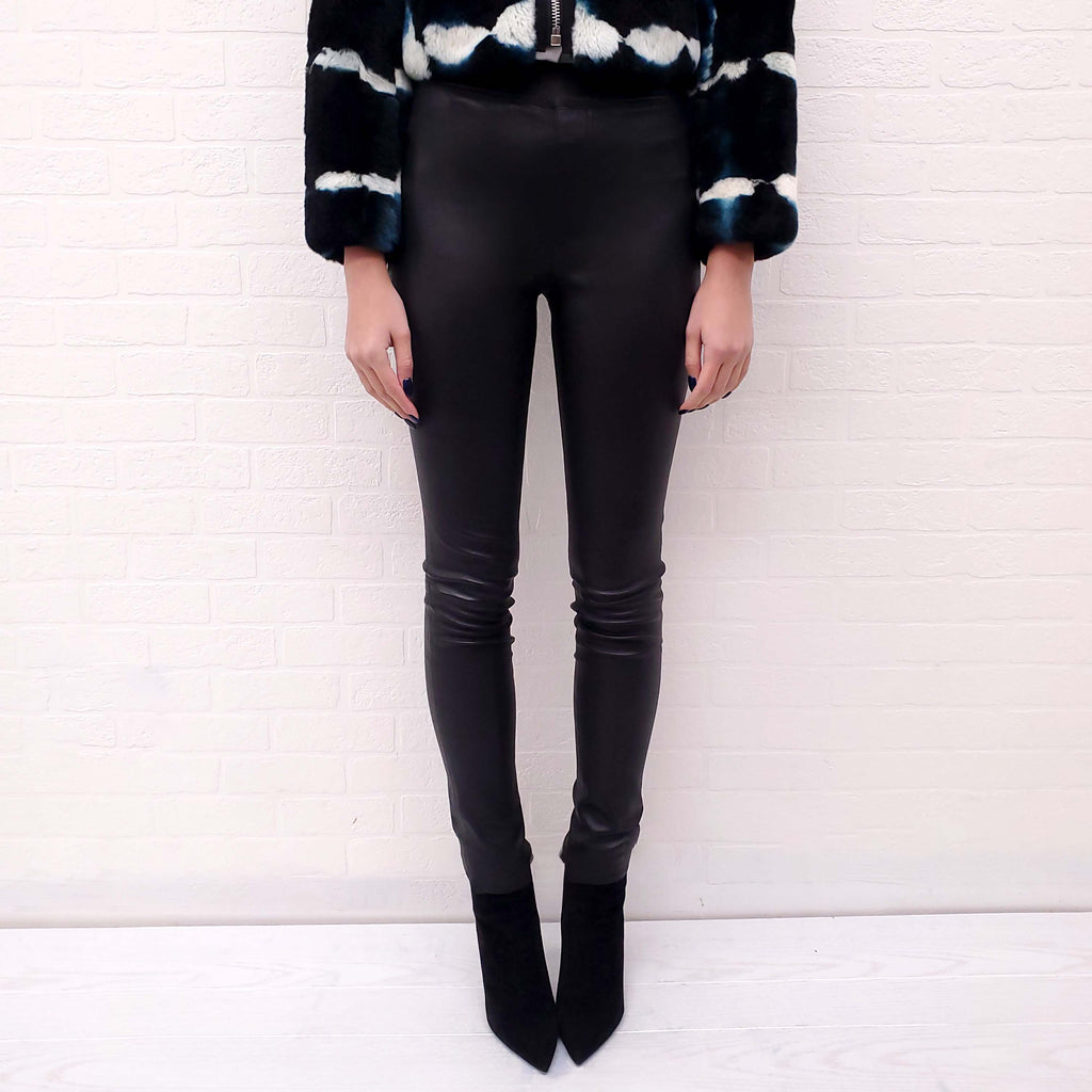 HELMUT LANG BLACK LEATHER LEGGINGS - SIZE 4