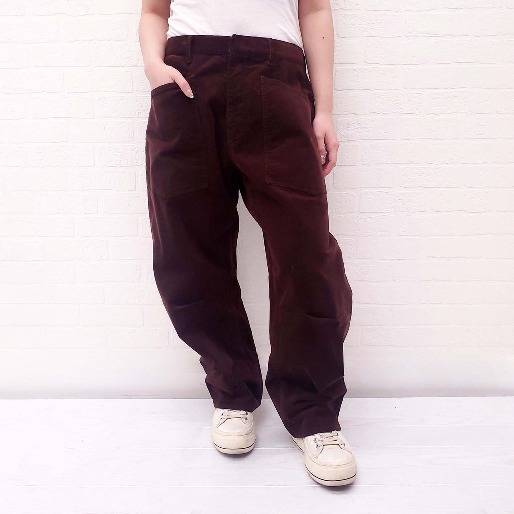 NILI LOTAN BURGUNDY CORDUROY BARREL LEG PANTS - SIZE 8