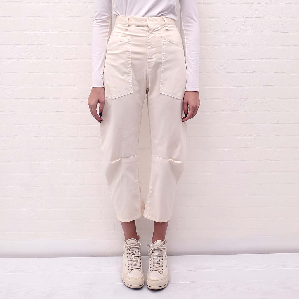 NILI LOTAN CREAM BARREL LEG CARGO PANTS - SIZE 0