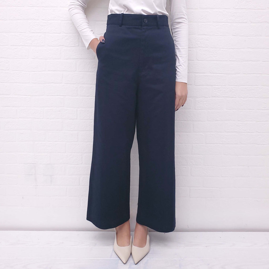 NILI LOTAN NAVY WIDE LEG TROUSERS - SIZE 2
