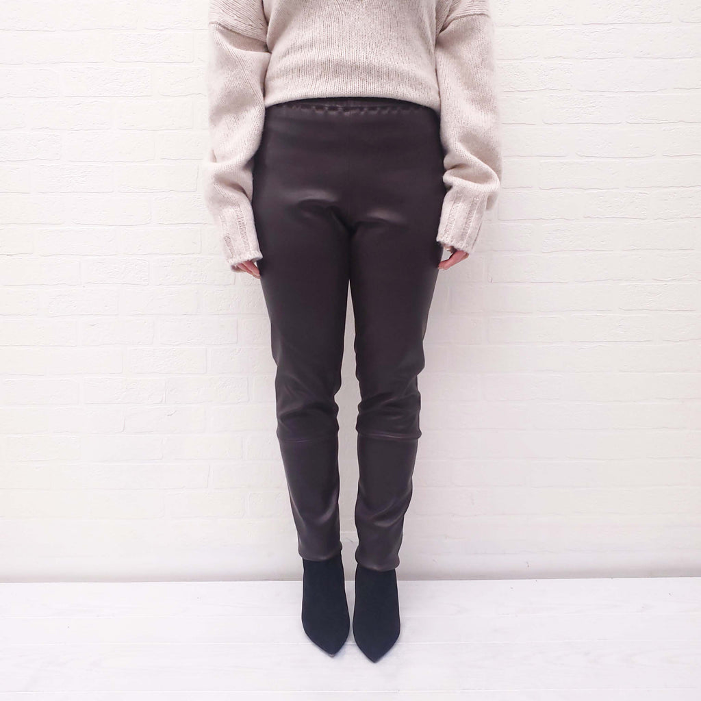 STOULS BROWN LEATHER LEGGINGS - SIZE M