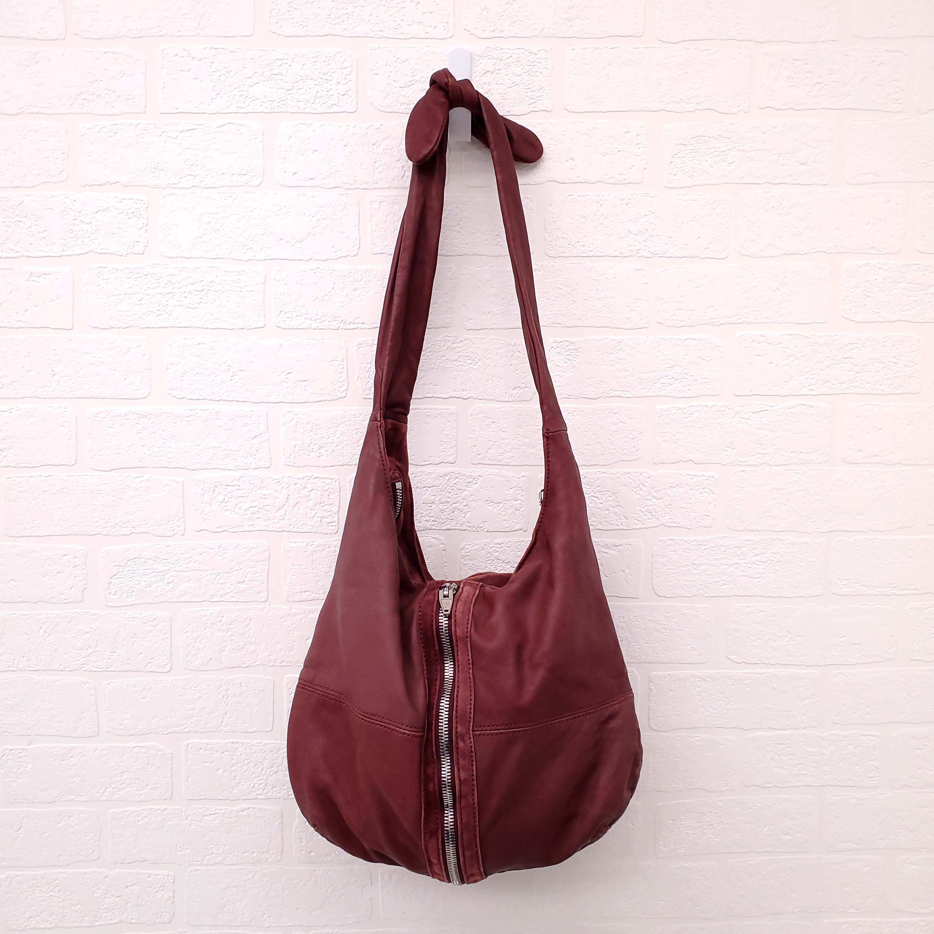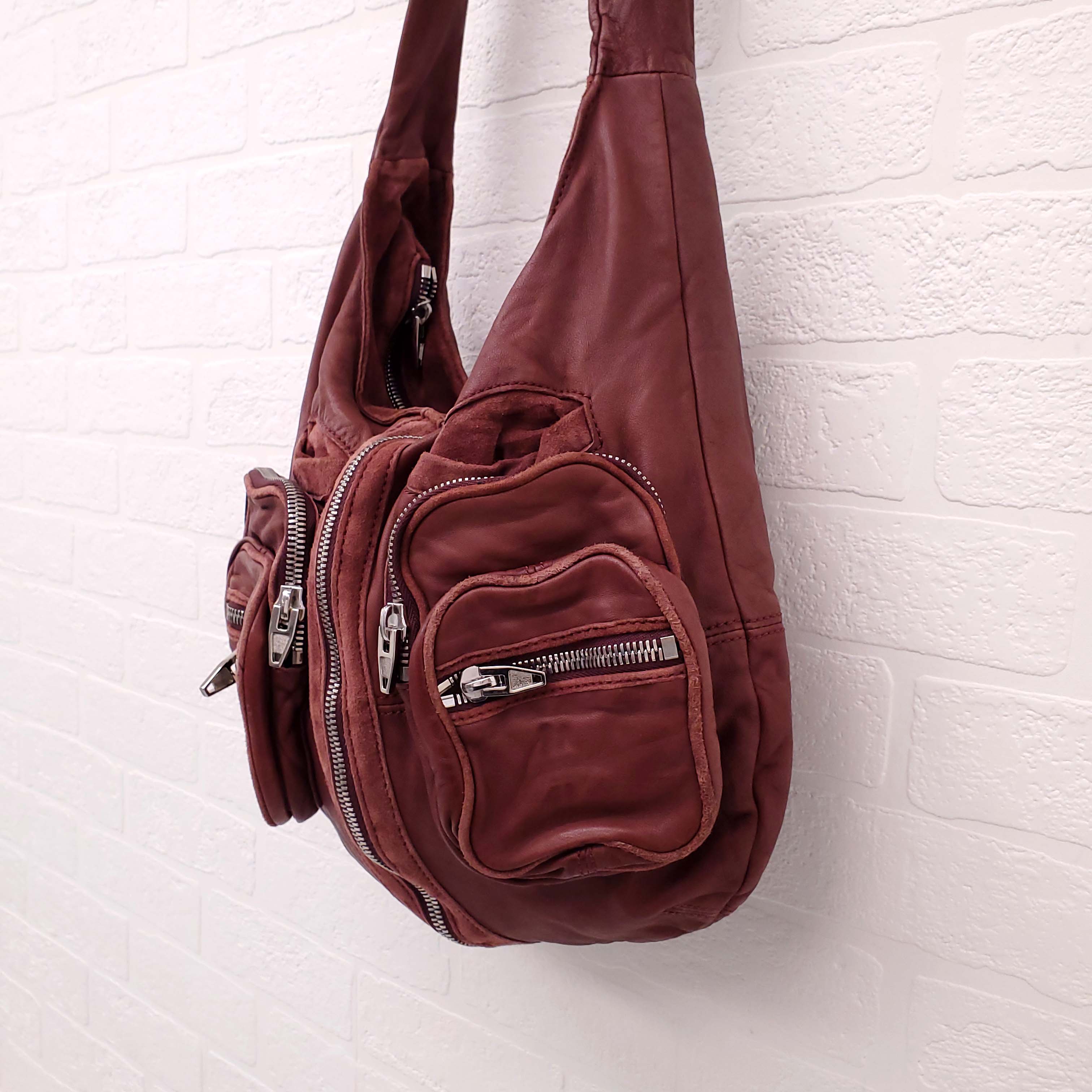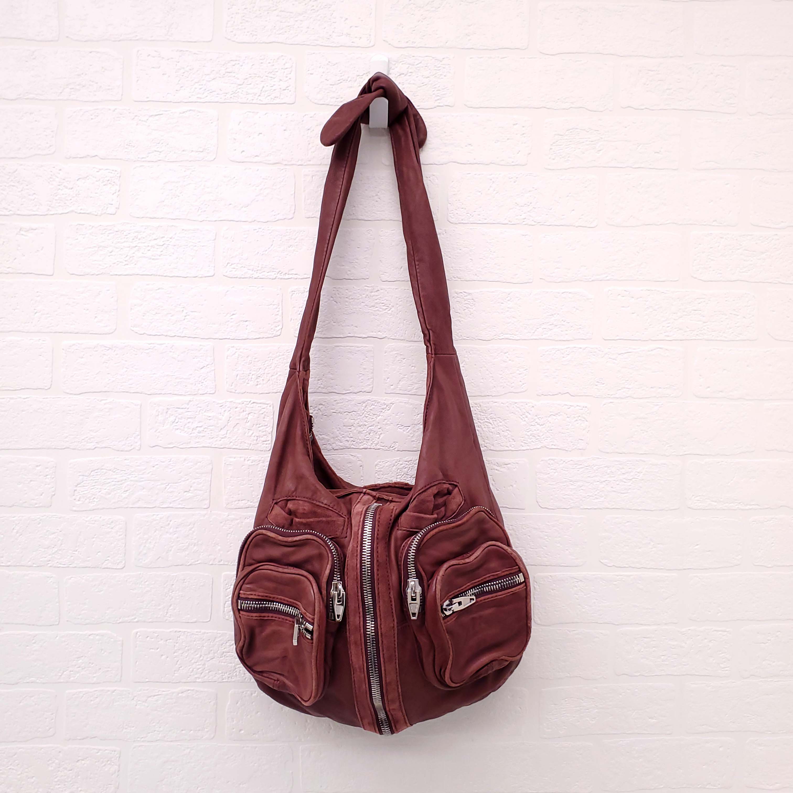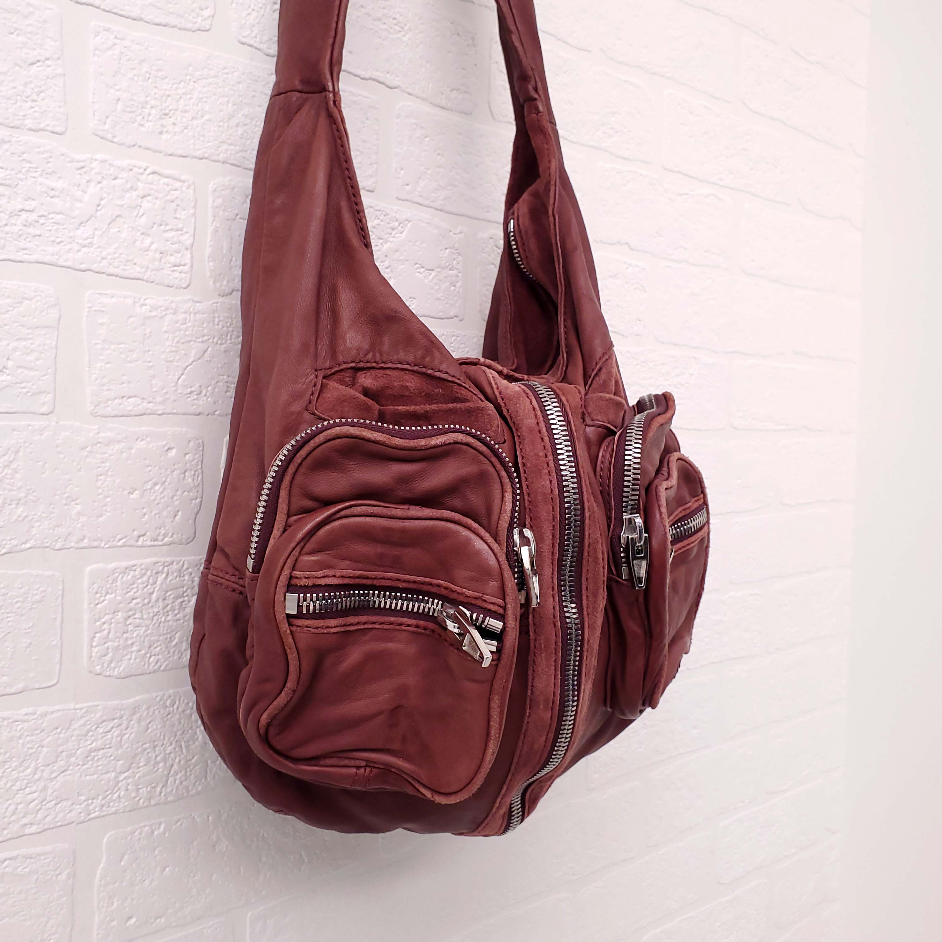 ALEXANDER WANG BURGUNDY LEATHER SHOULDER BAG WITH SILVER ZIPPERS