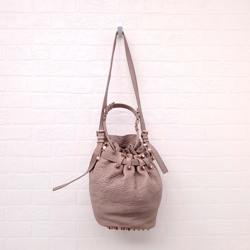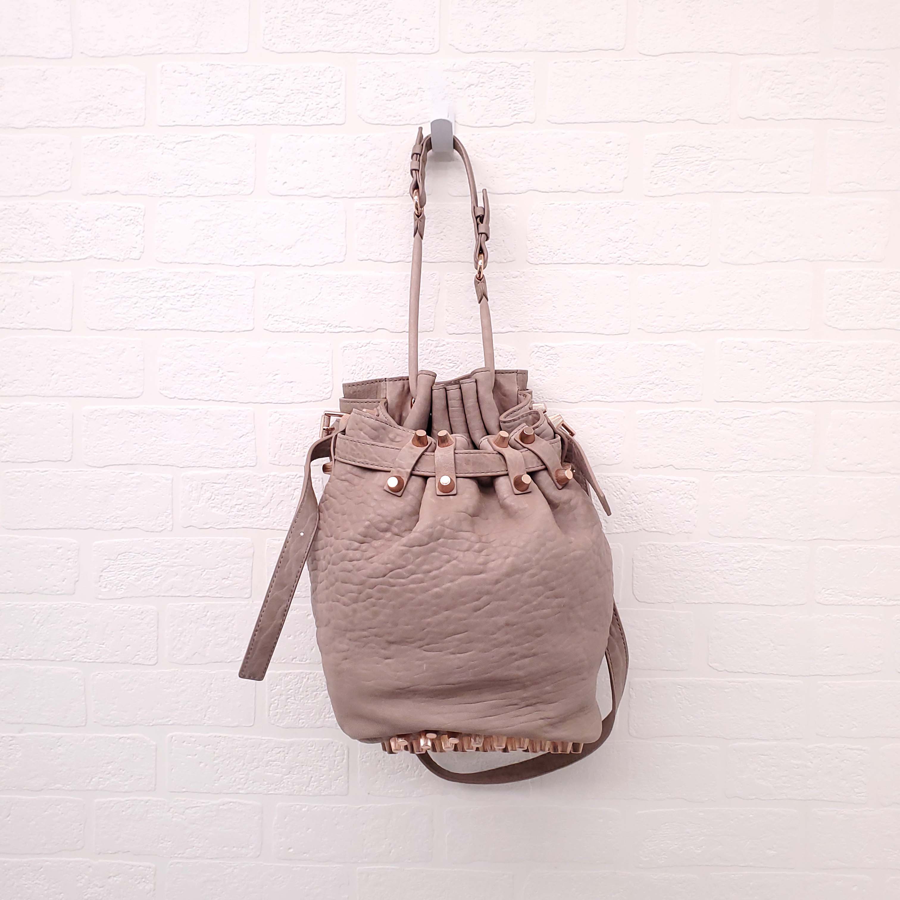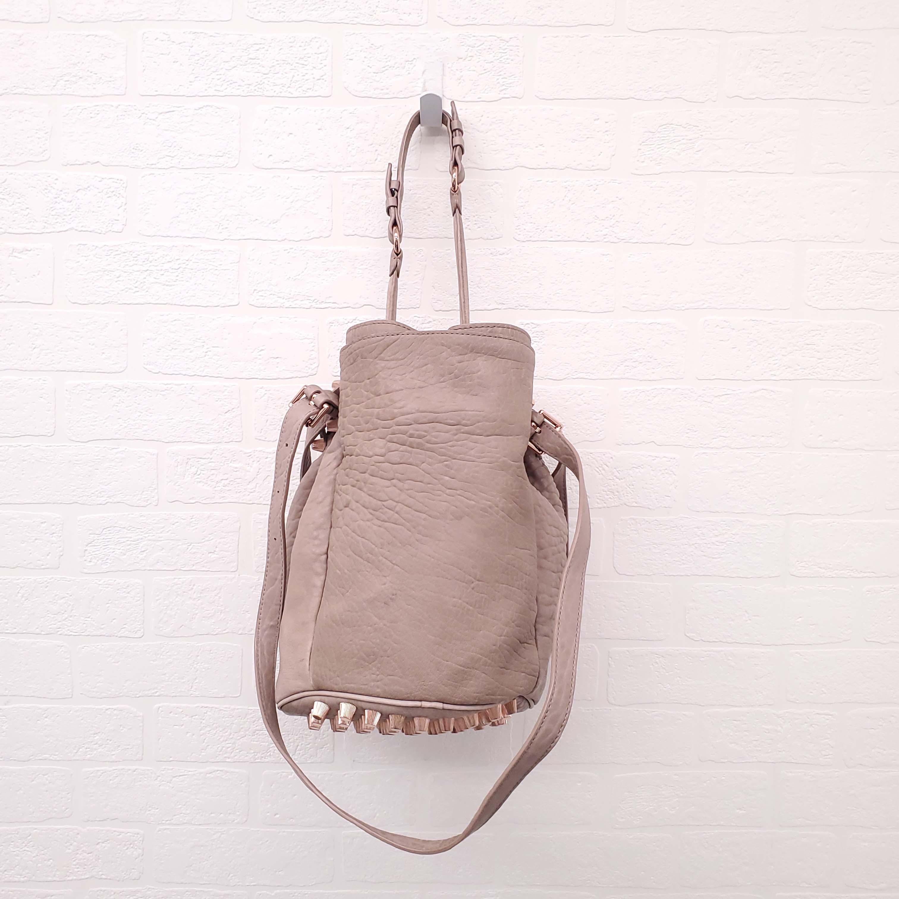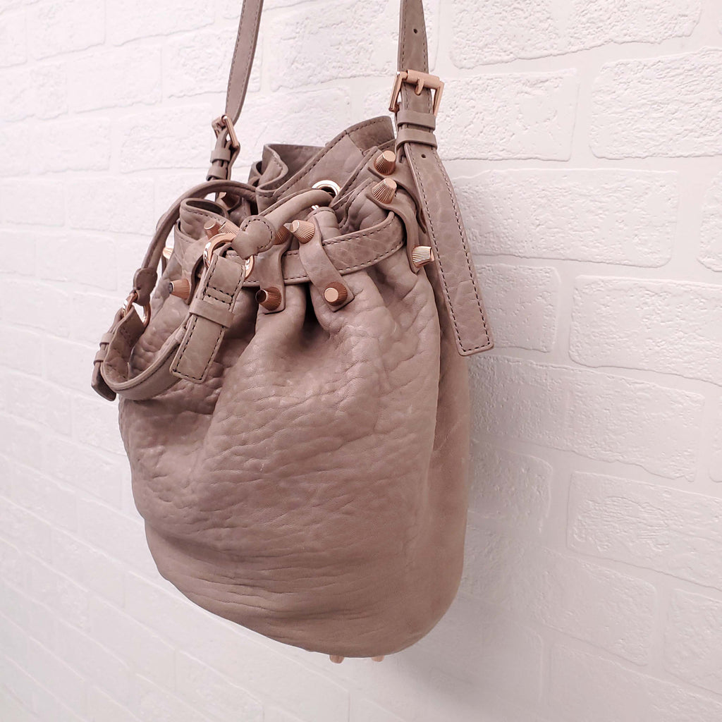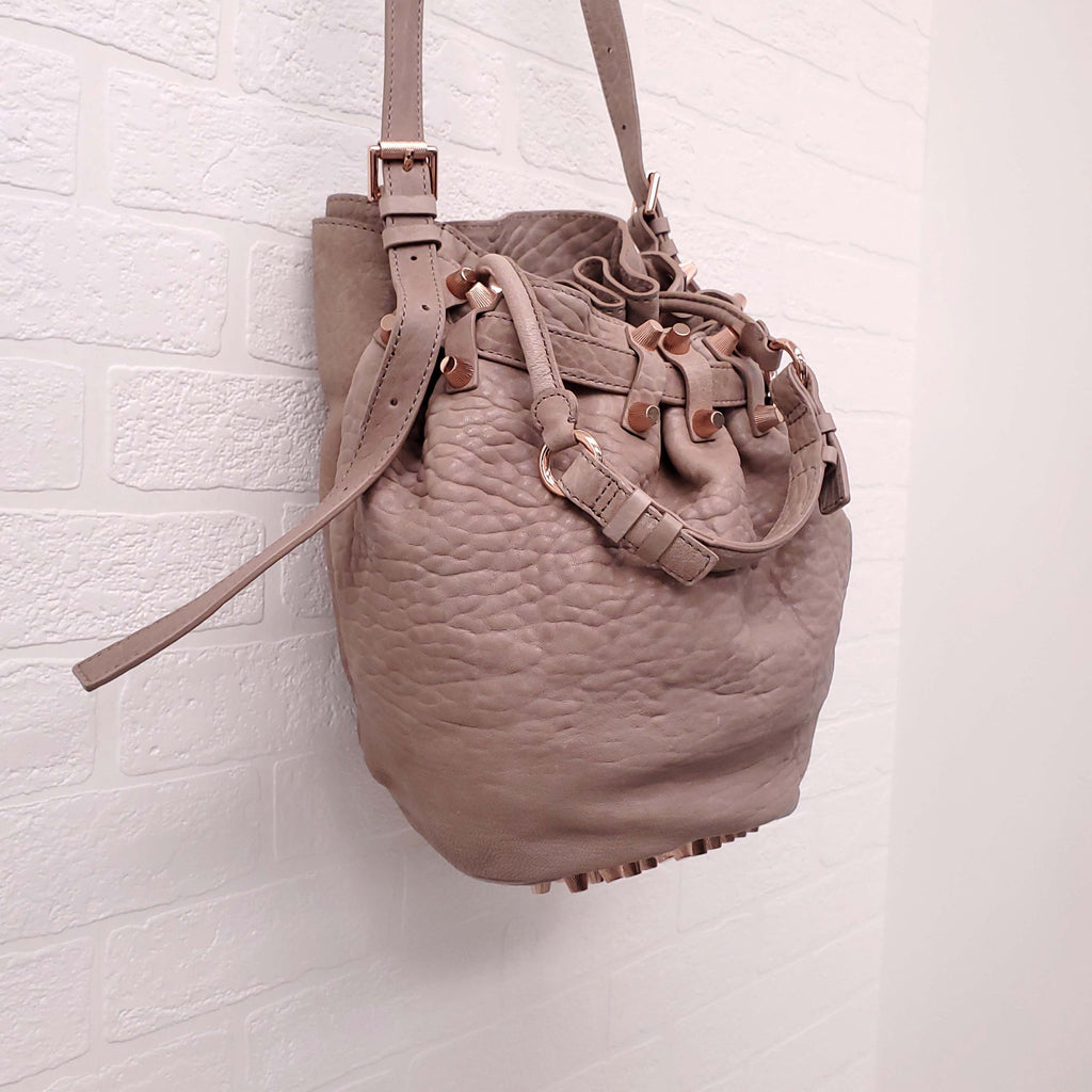 ALEXANDER WANG NUDE LEATHER 'ROCCO' BUCKET BAG WITH ROSE GOLD STUDS