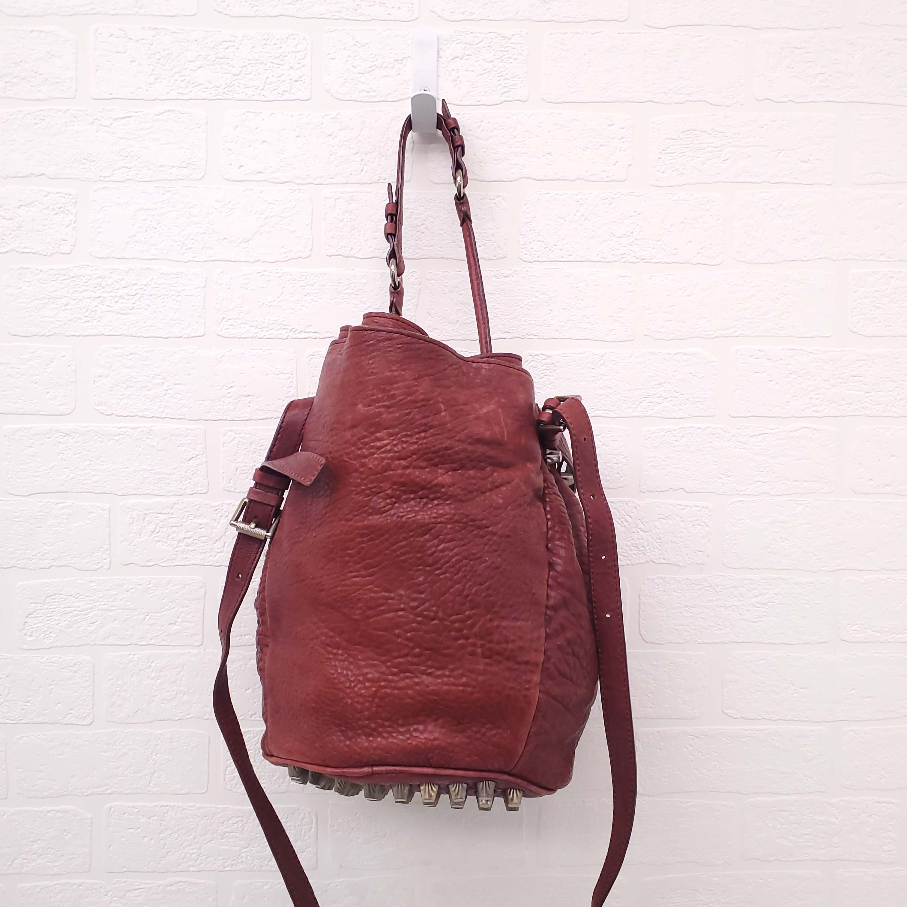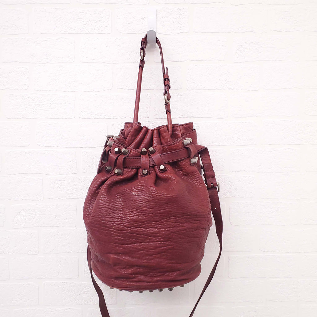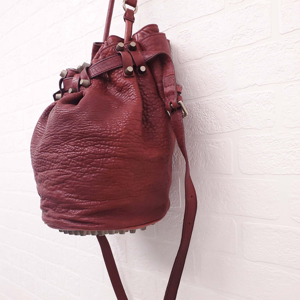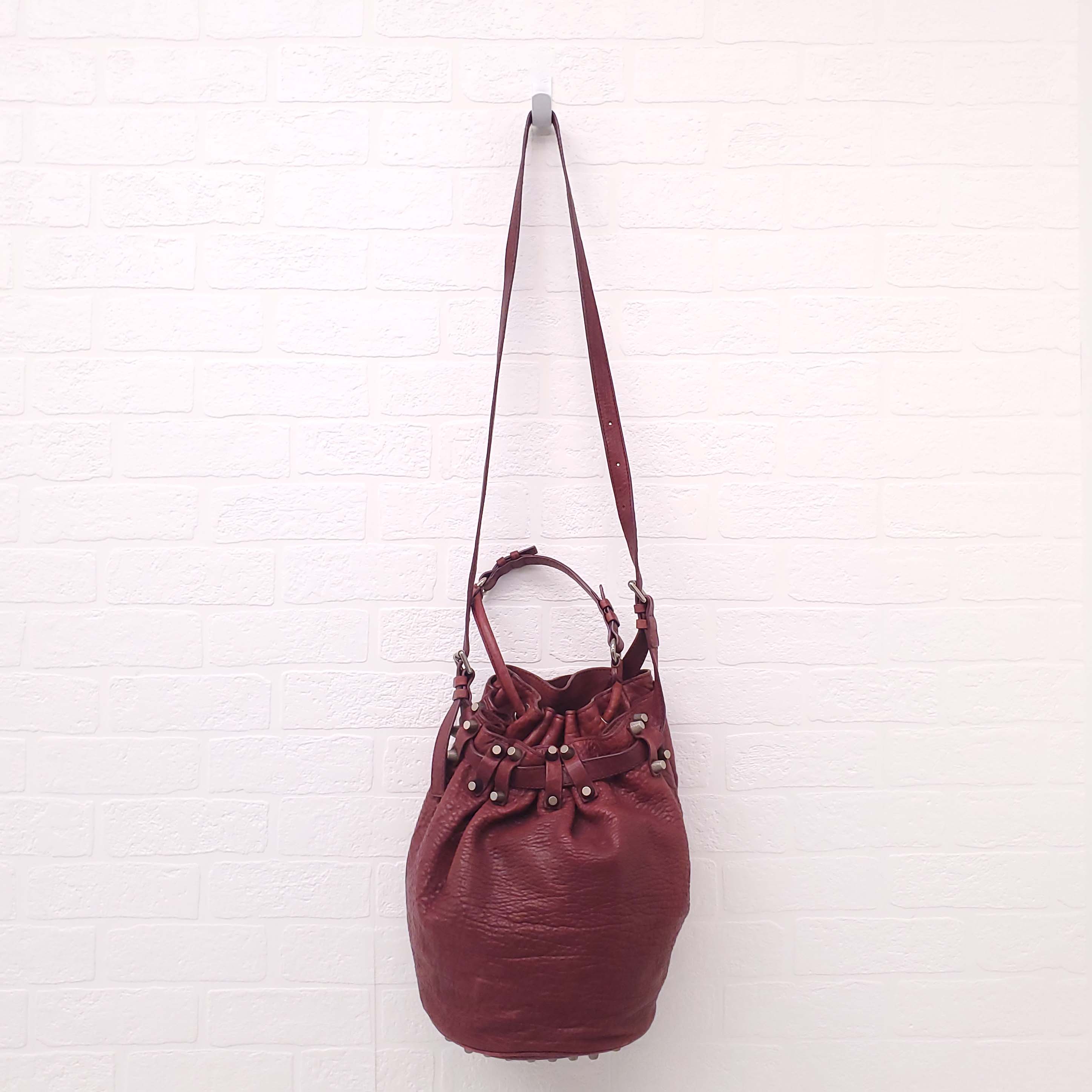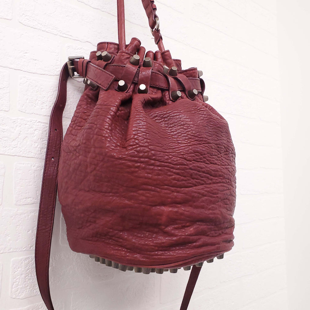 ALEXANDER WANG BURGUNDY LEATHER 'ROCCO' BUCKET BAG WITH GOLD STUDS