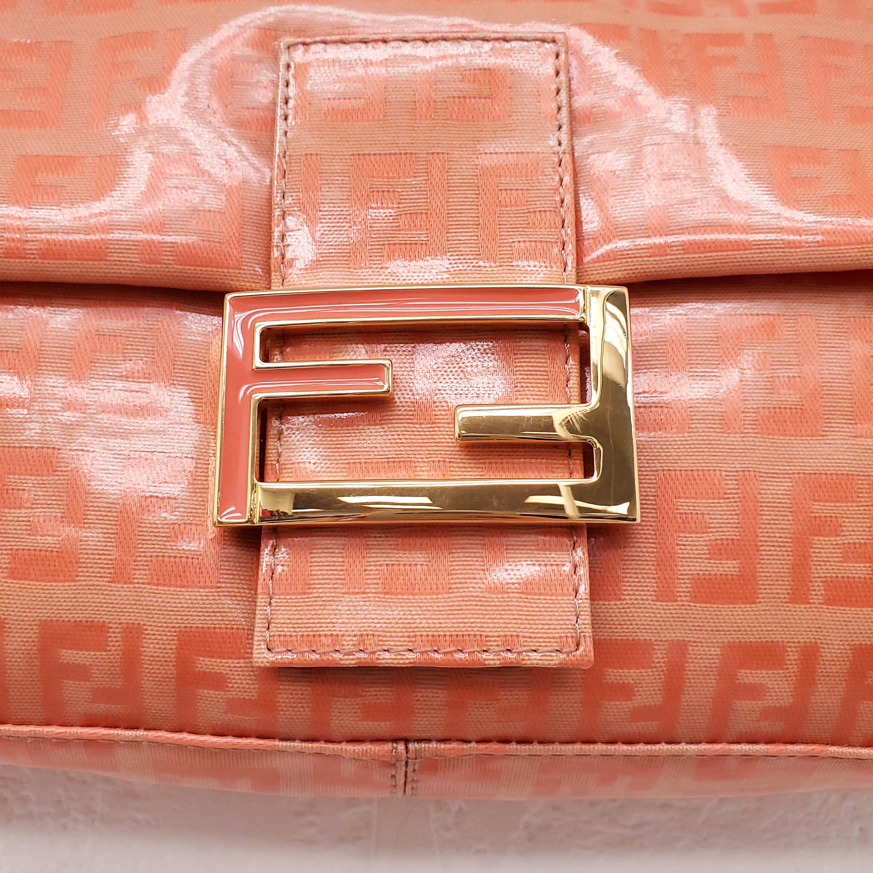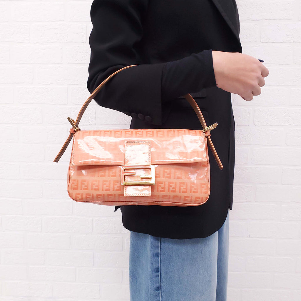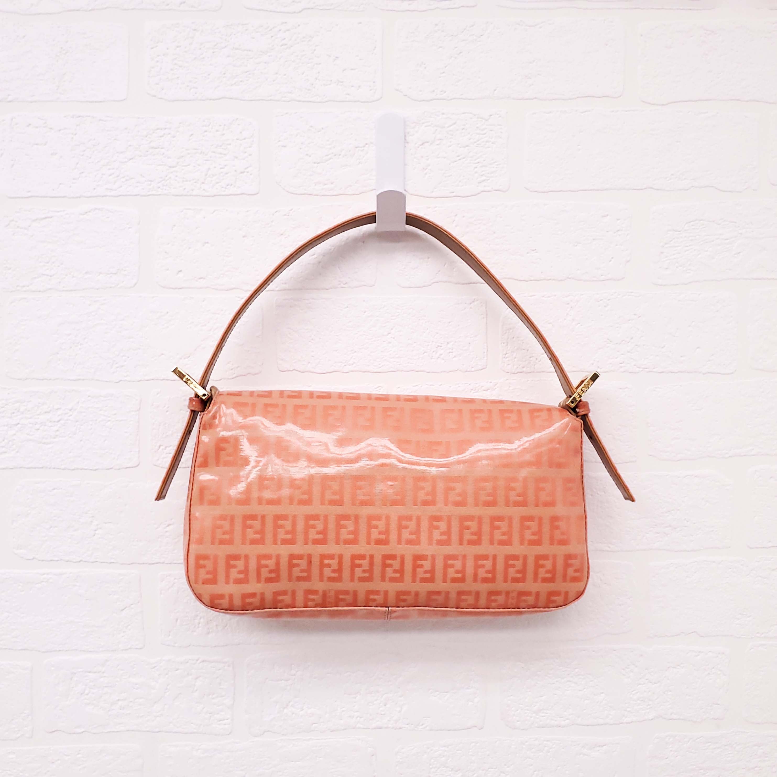 FENDI ORANGE PATENT 'ZUCCHINO BAGUETTE' SHOULDER BAG