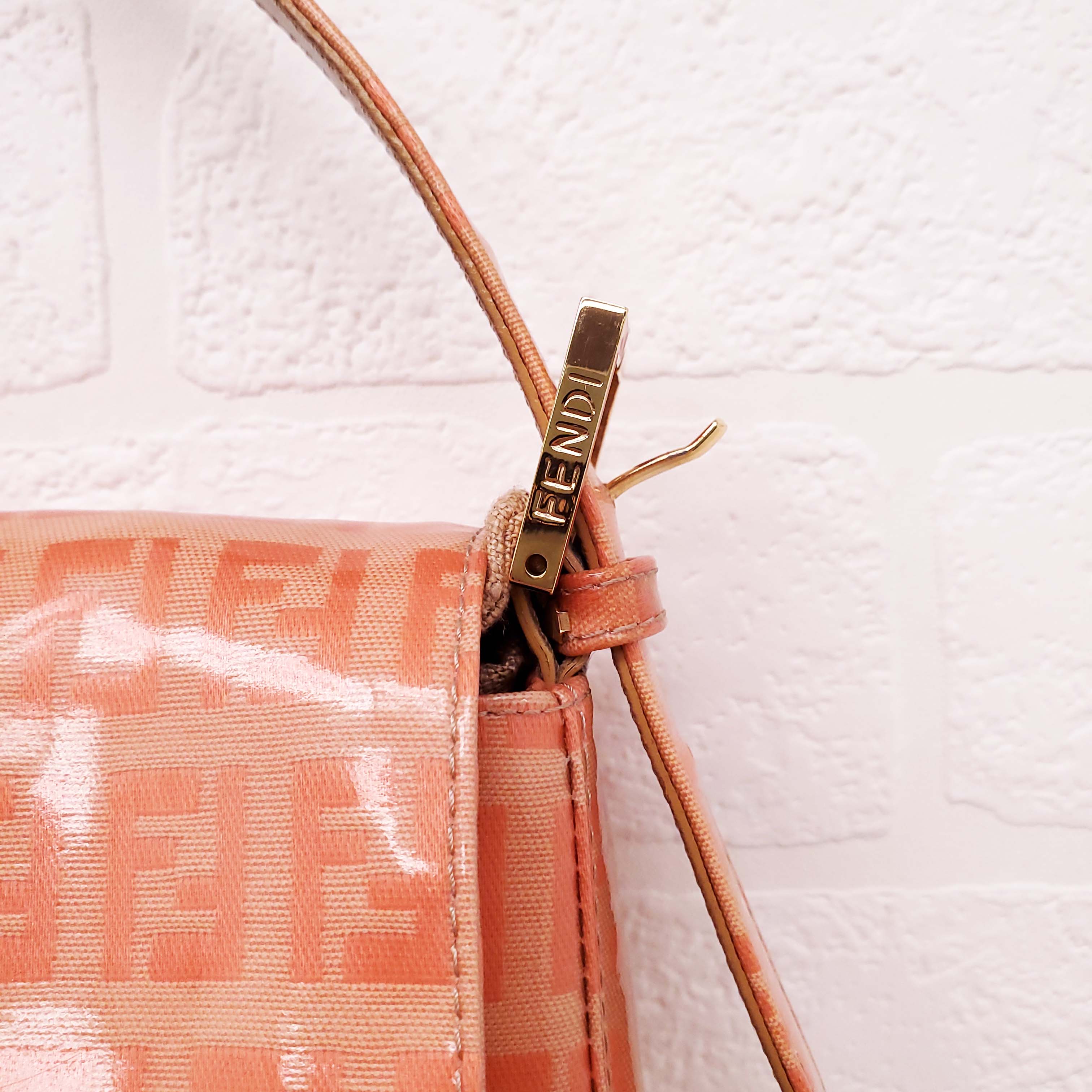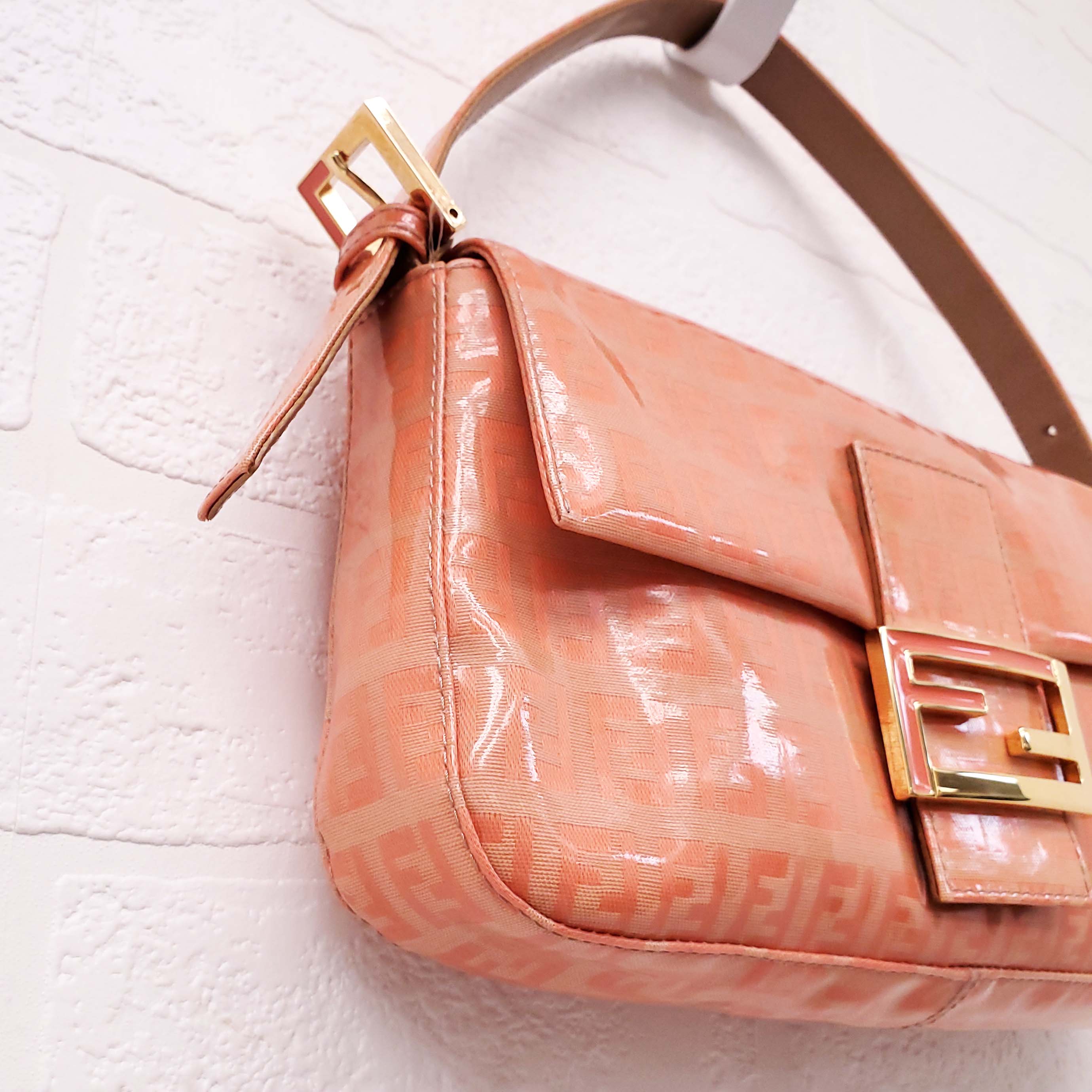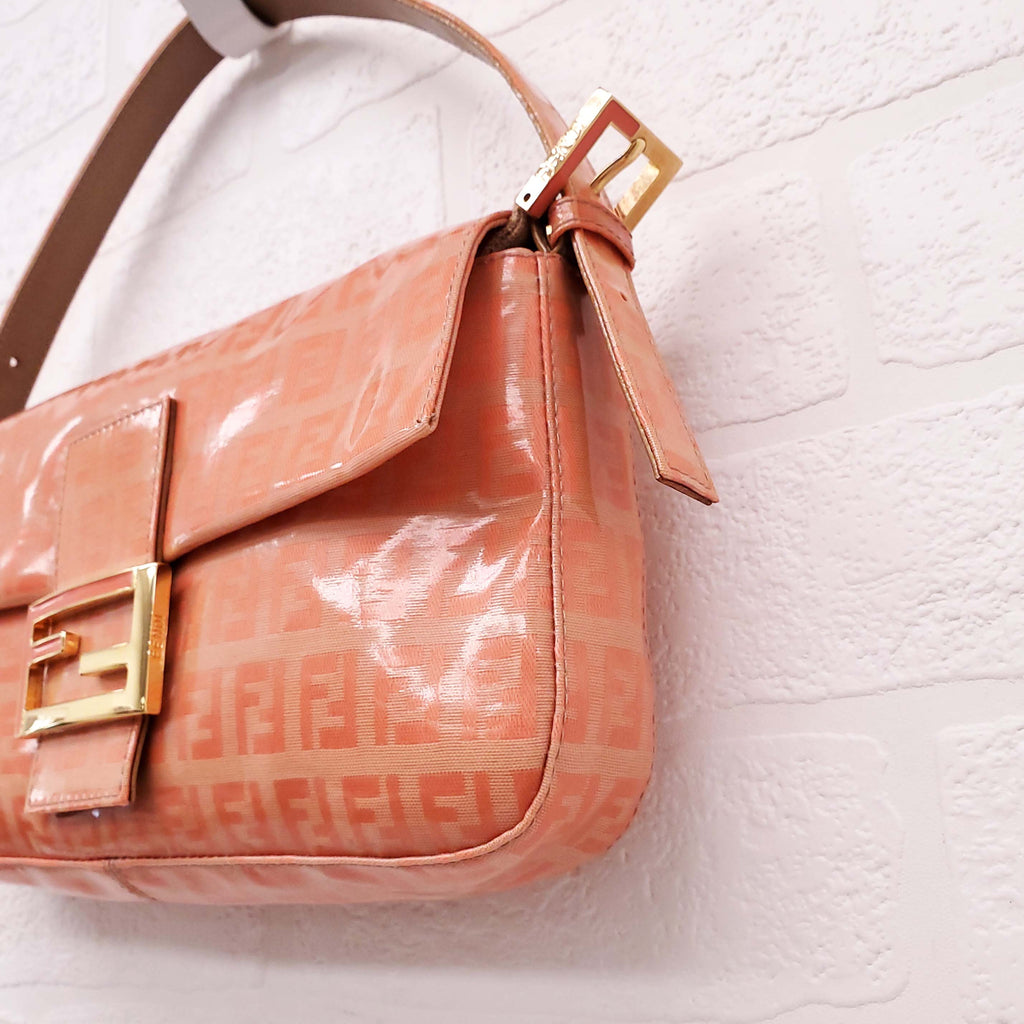 FENDI ORANGE PATENT 'ZUCCHINO BAGUETTE' SHOULDER BAG