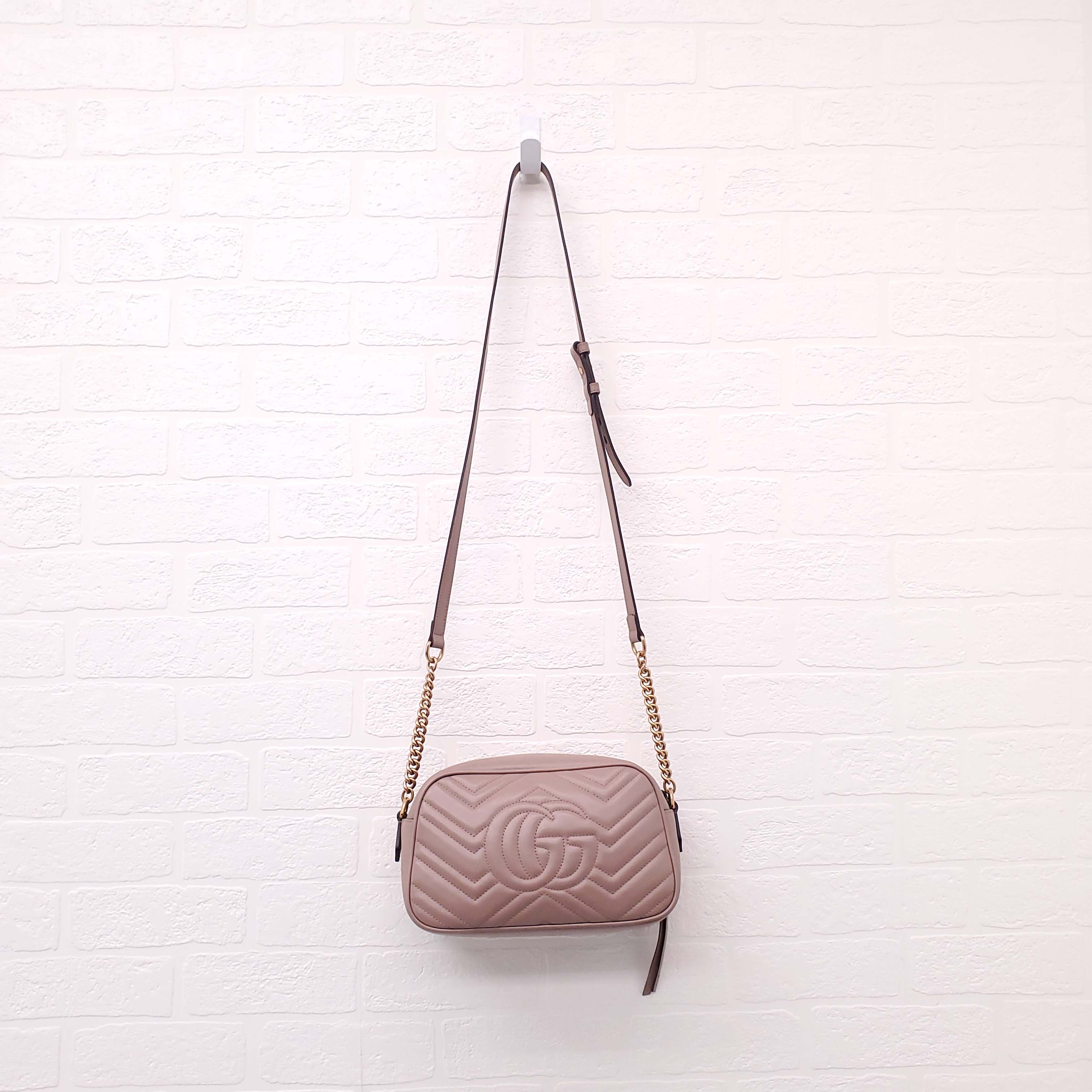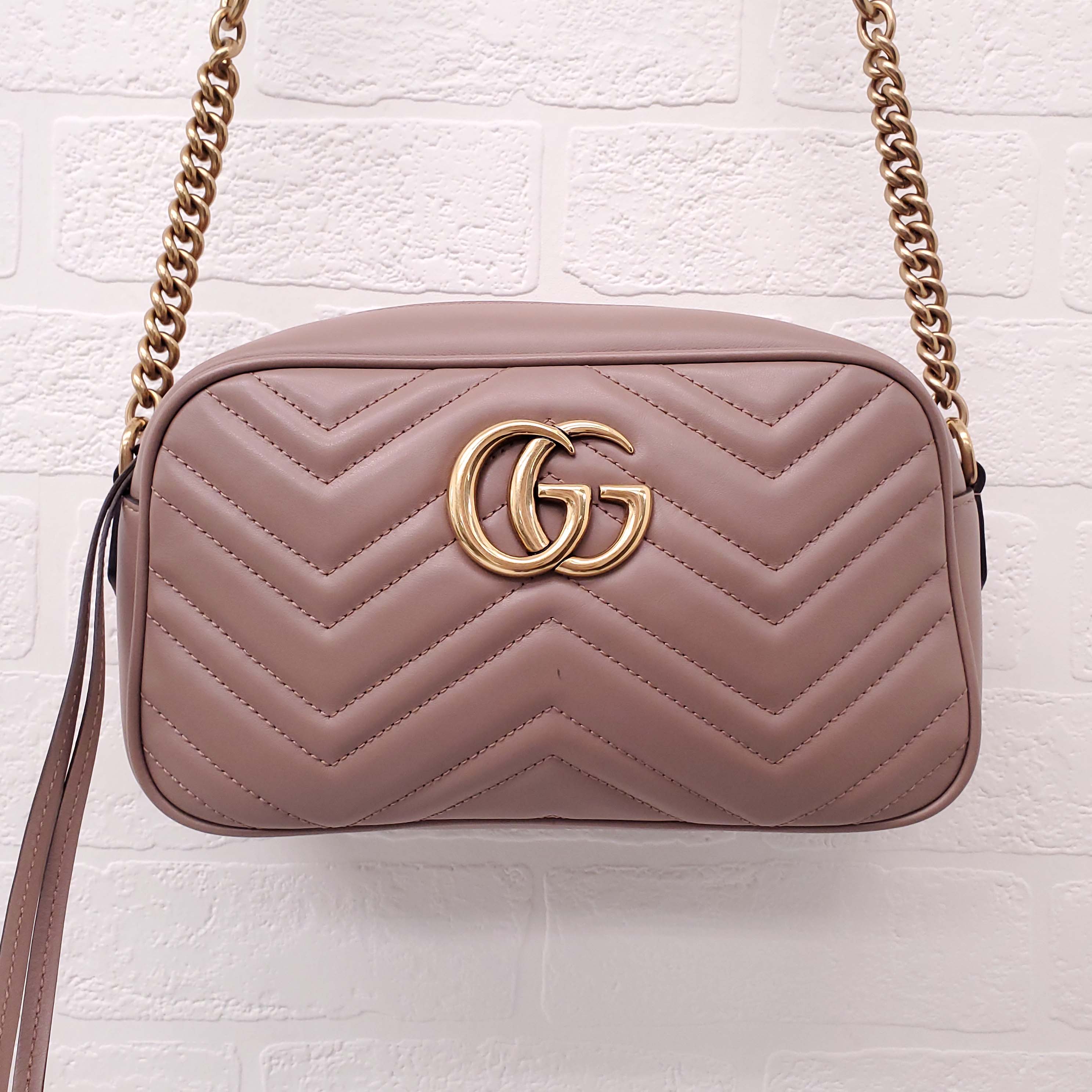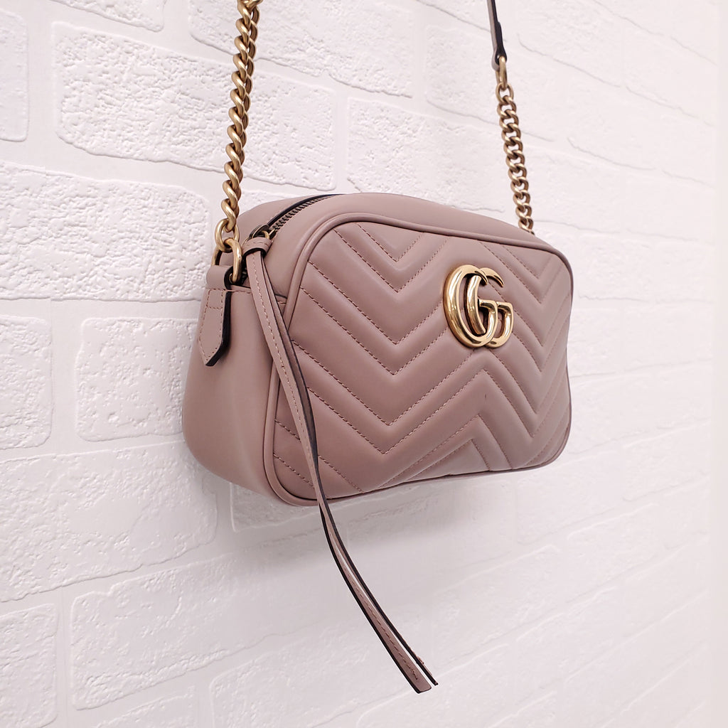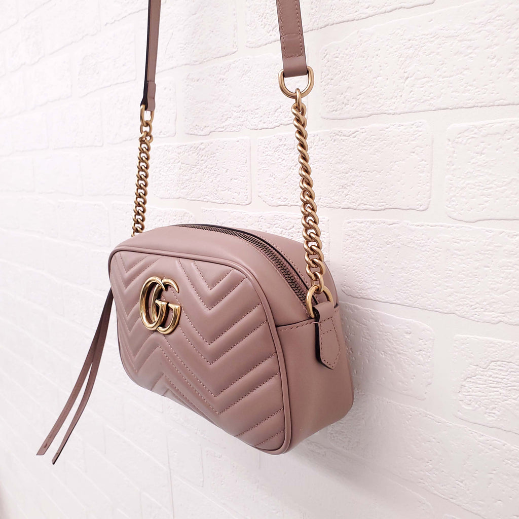 GUCCI BLUSH PINK LEATHER 'MARMONT' CAMERA BAG
