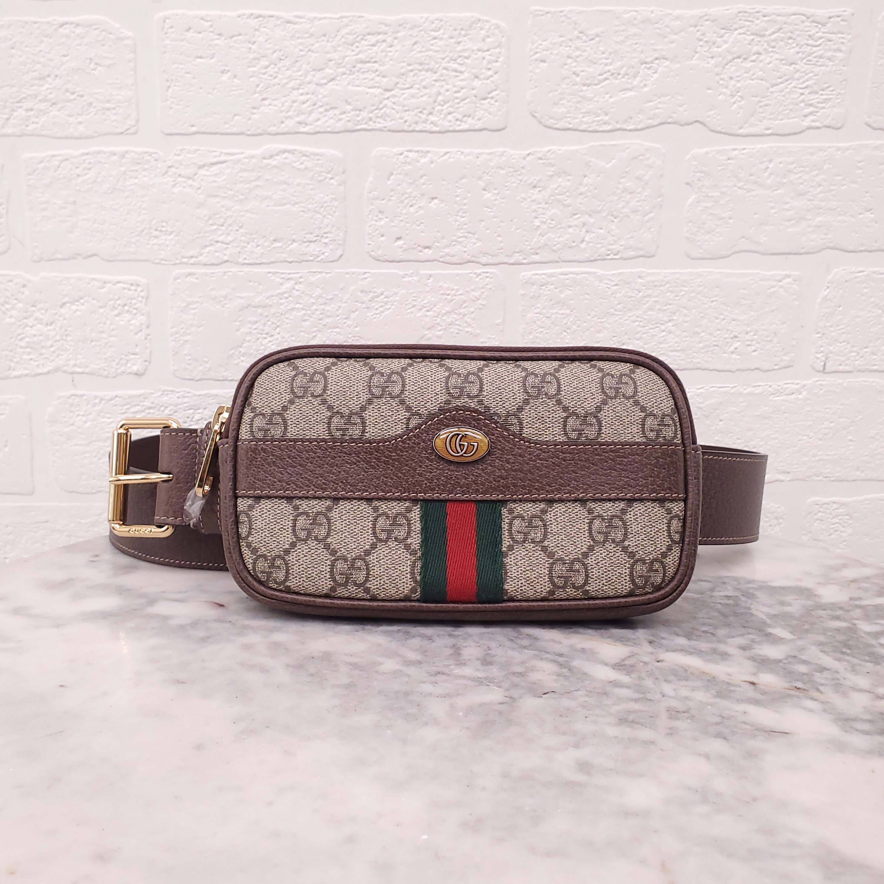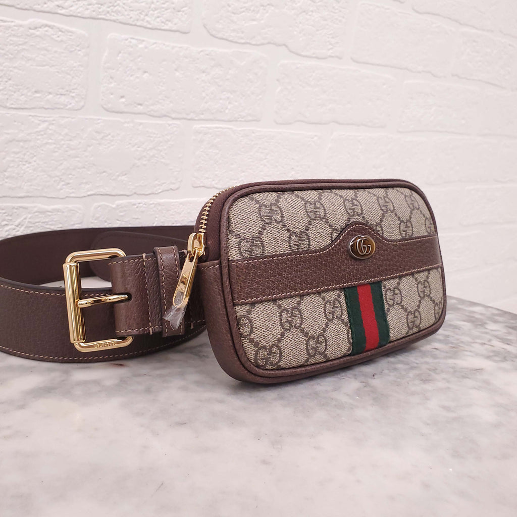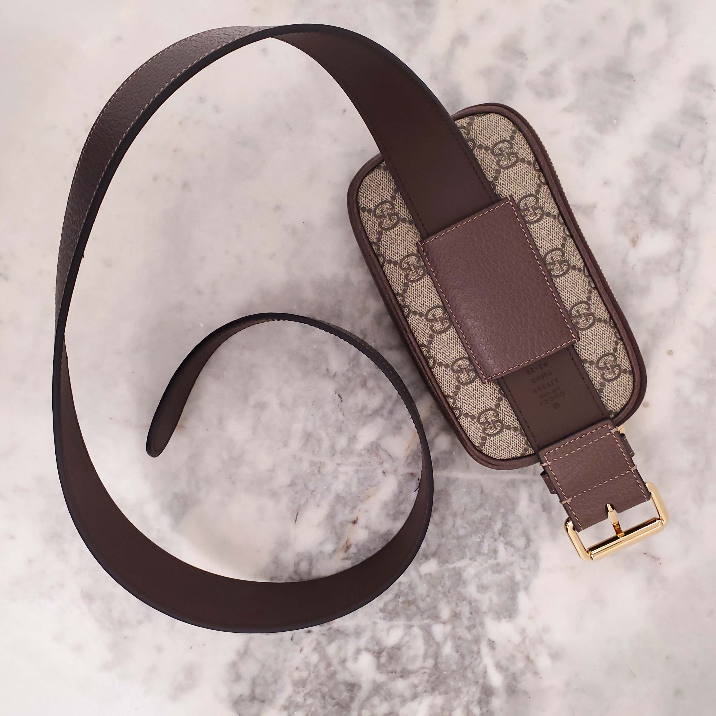 GUCCI MONOGRAM COATED CANVAS AND LEATHER BELT BAG - SIZE 95