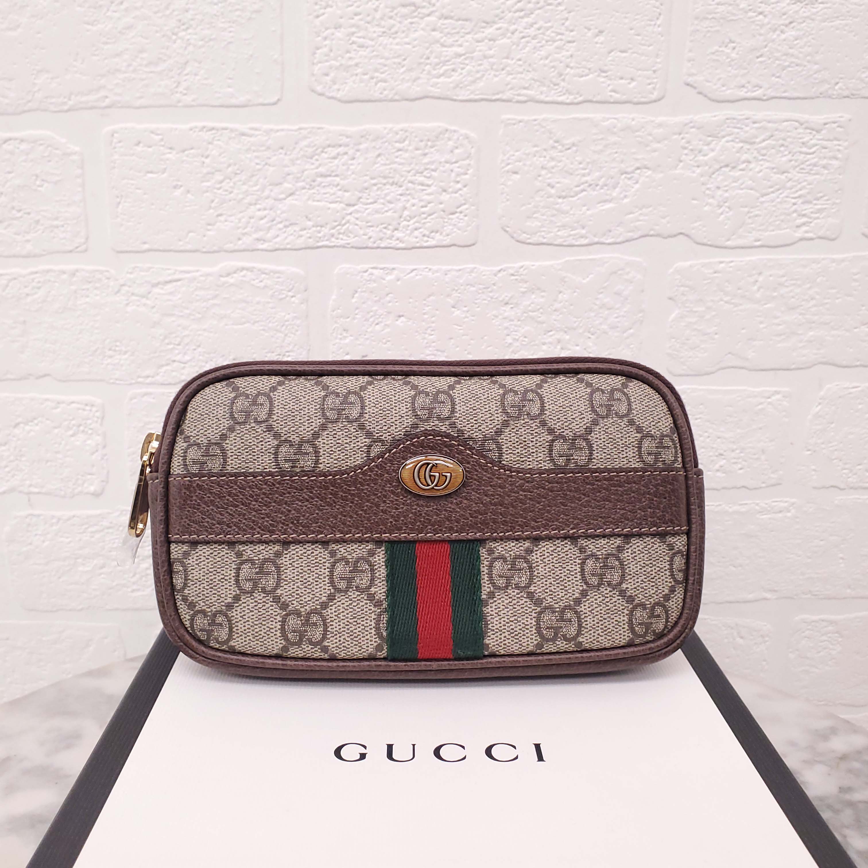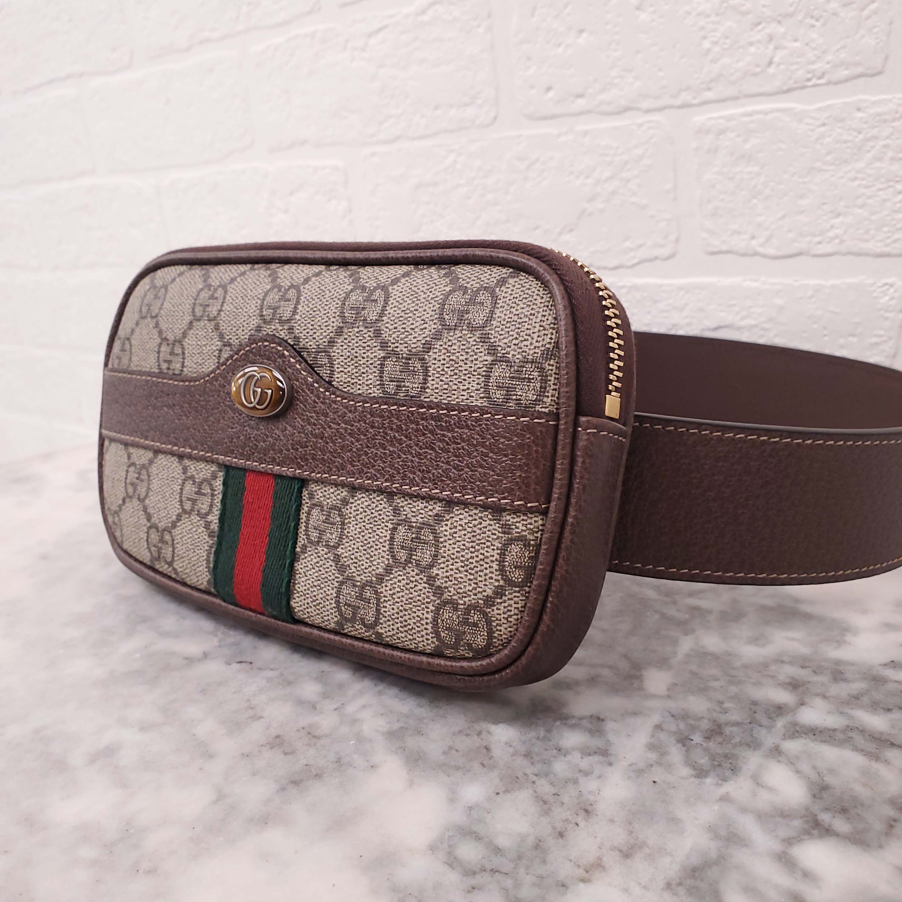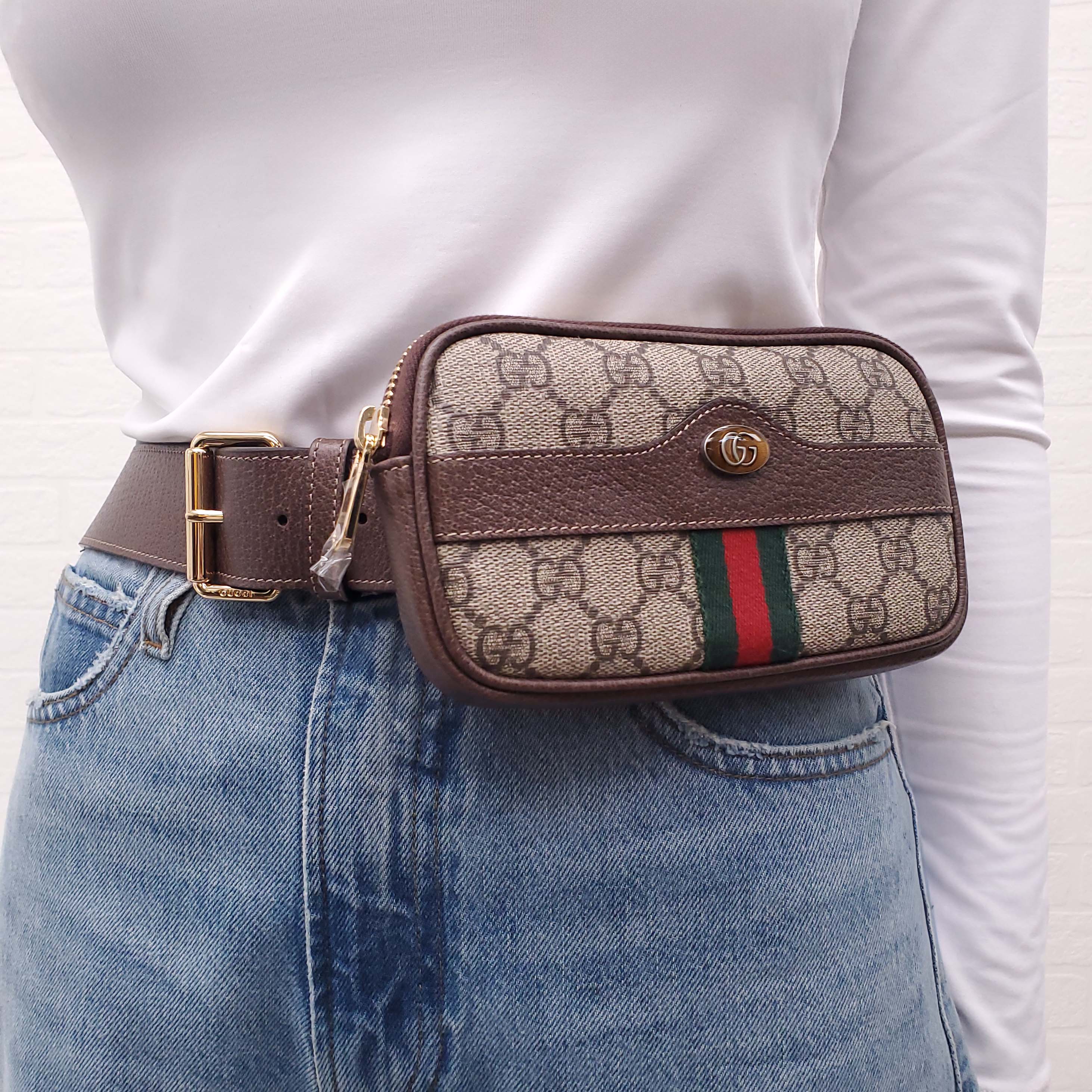GUCCI MONOGRAM COATED CANVAS AND LEATHER BELT BAG - SIZE 95
