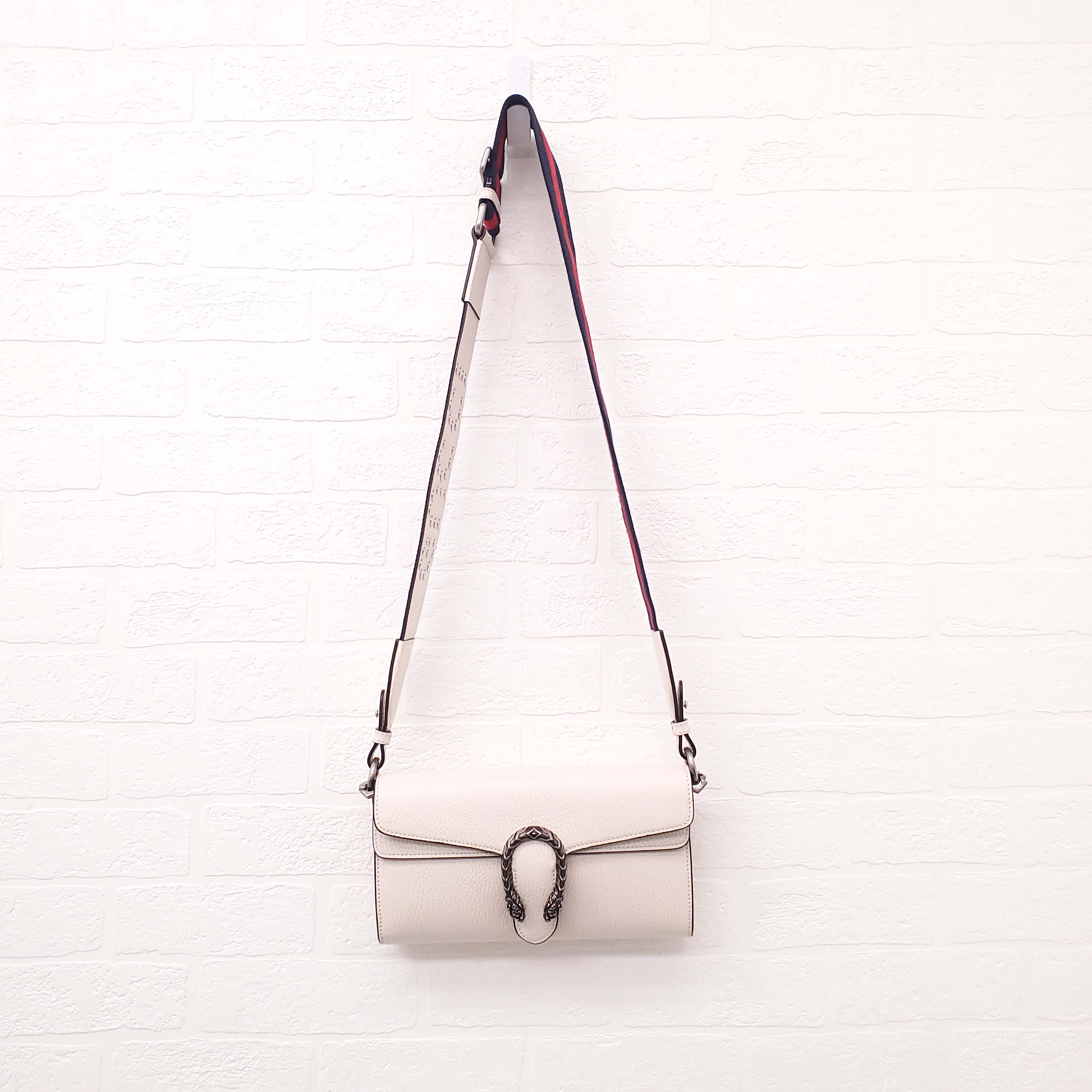 GUCCI WHITE DIONYSUS BAG WITH STUDDED LOGO GUITAR STRAP