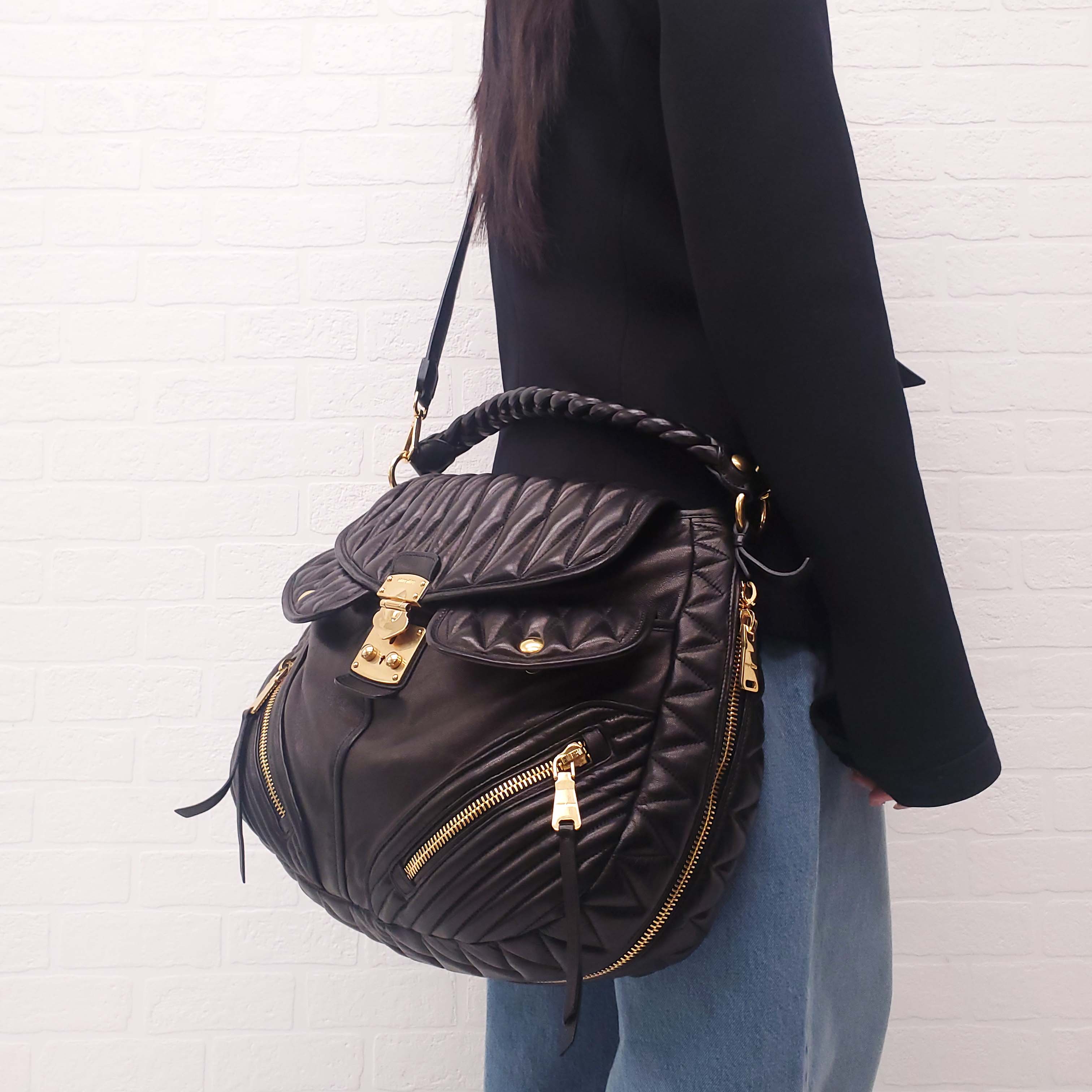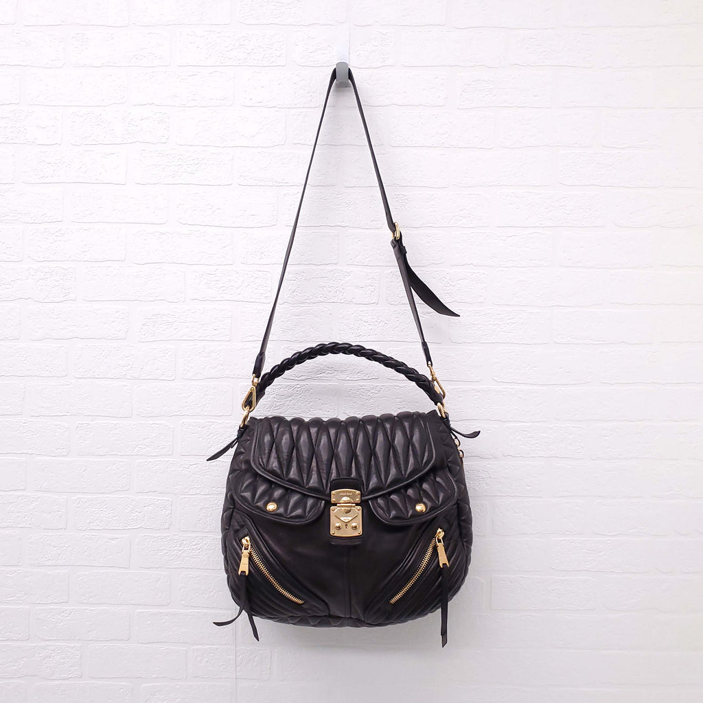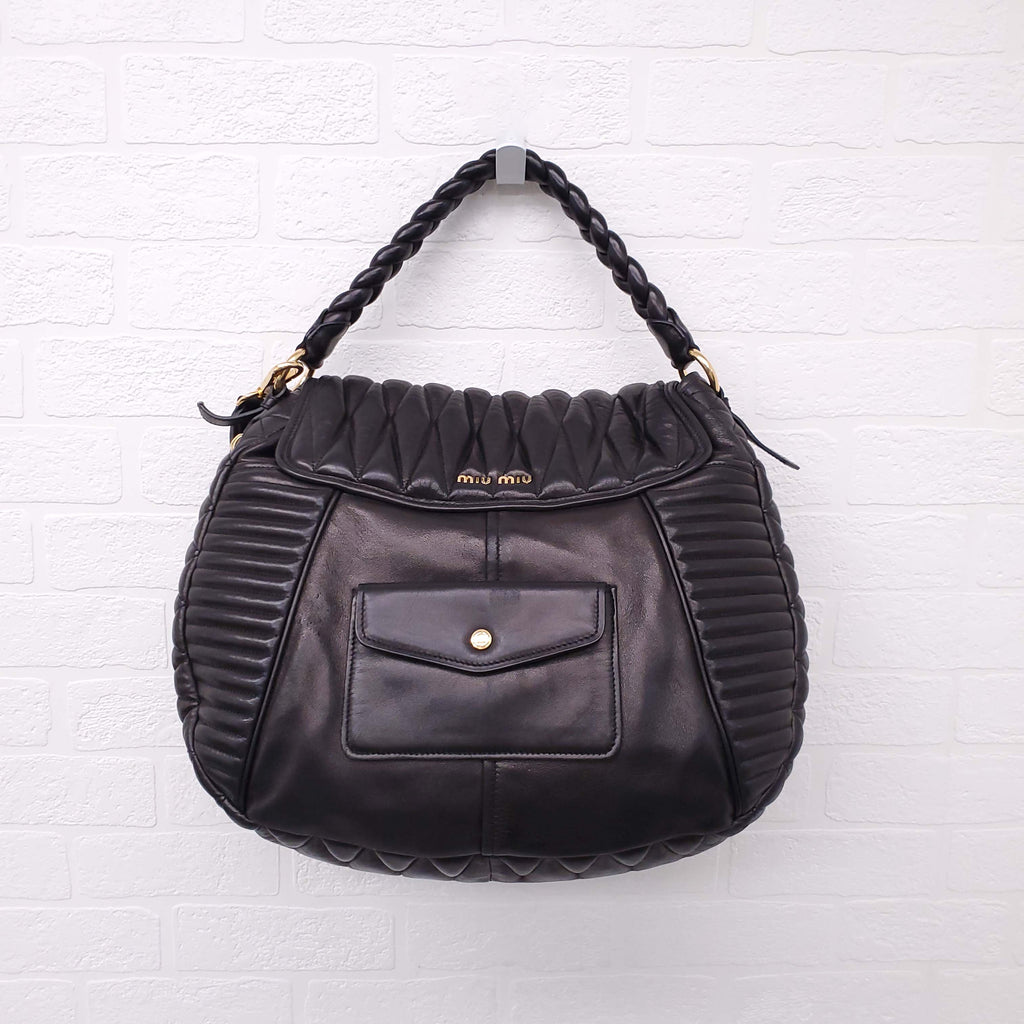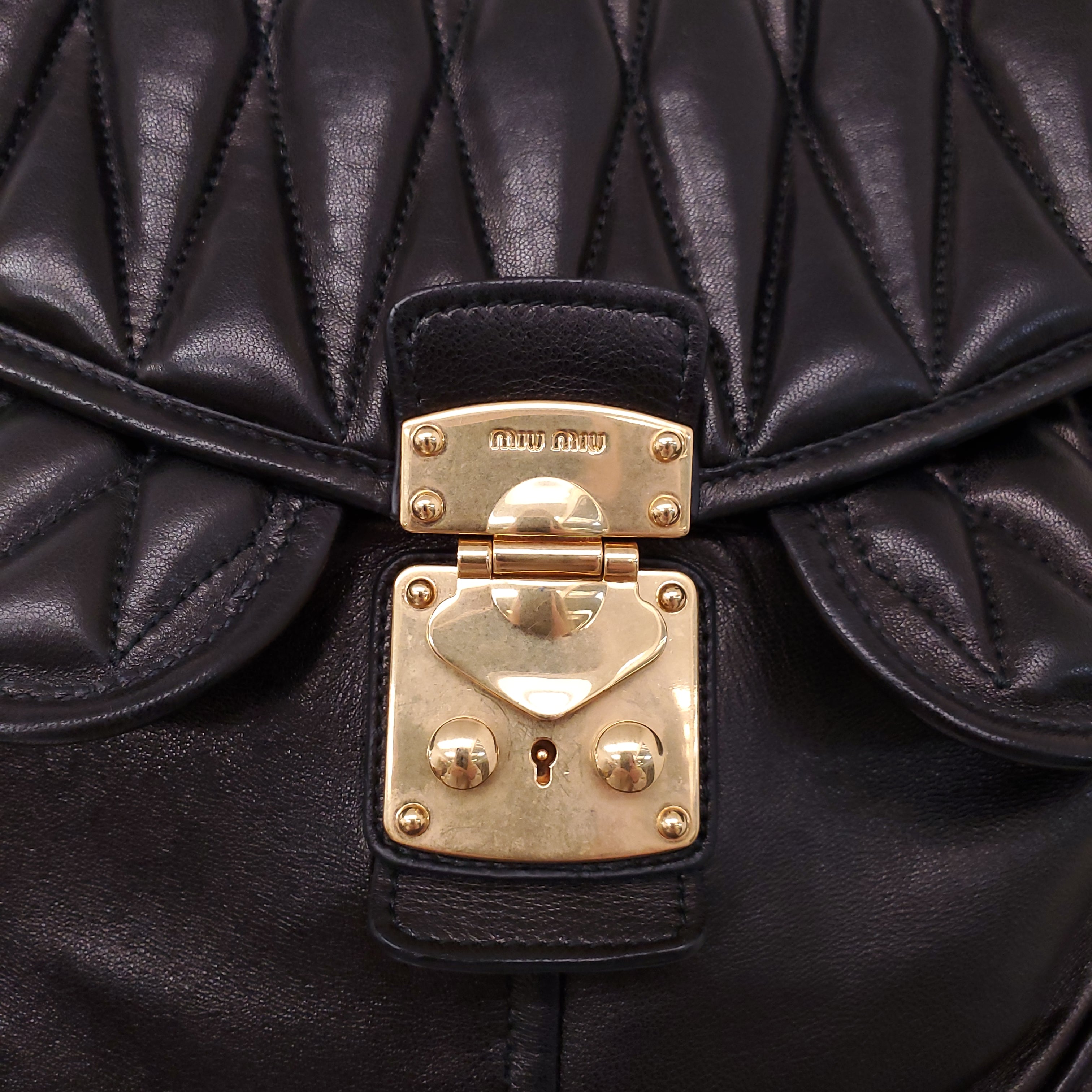 MIU MIU BLACK LEATHER BRAIDED 'MATELASSE' CROSSBODY BAG