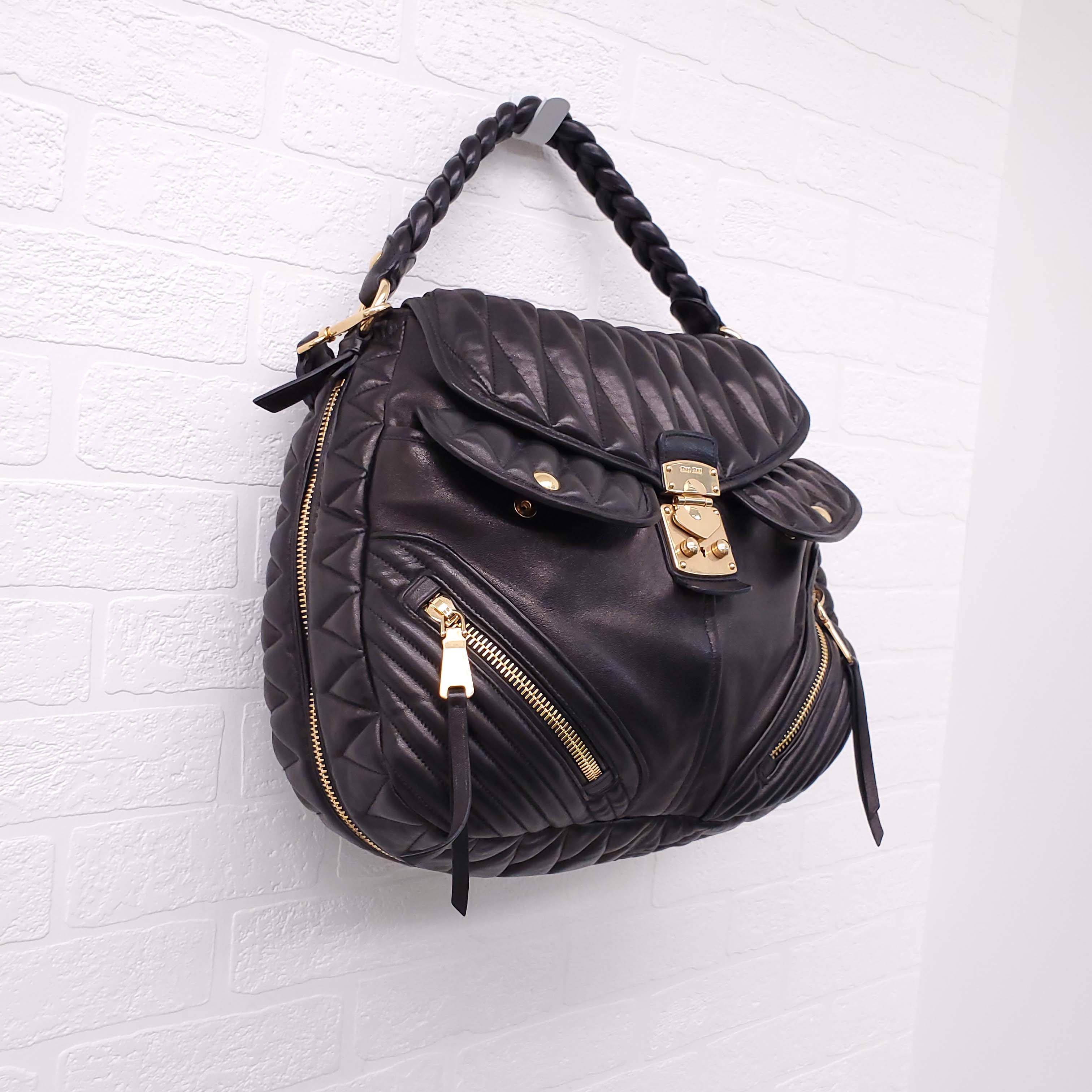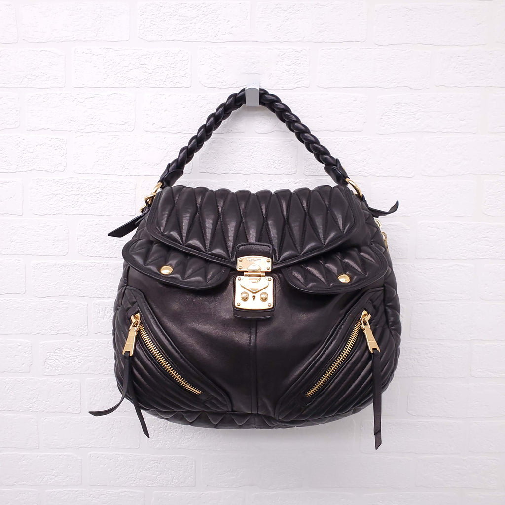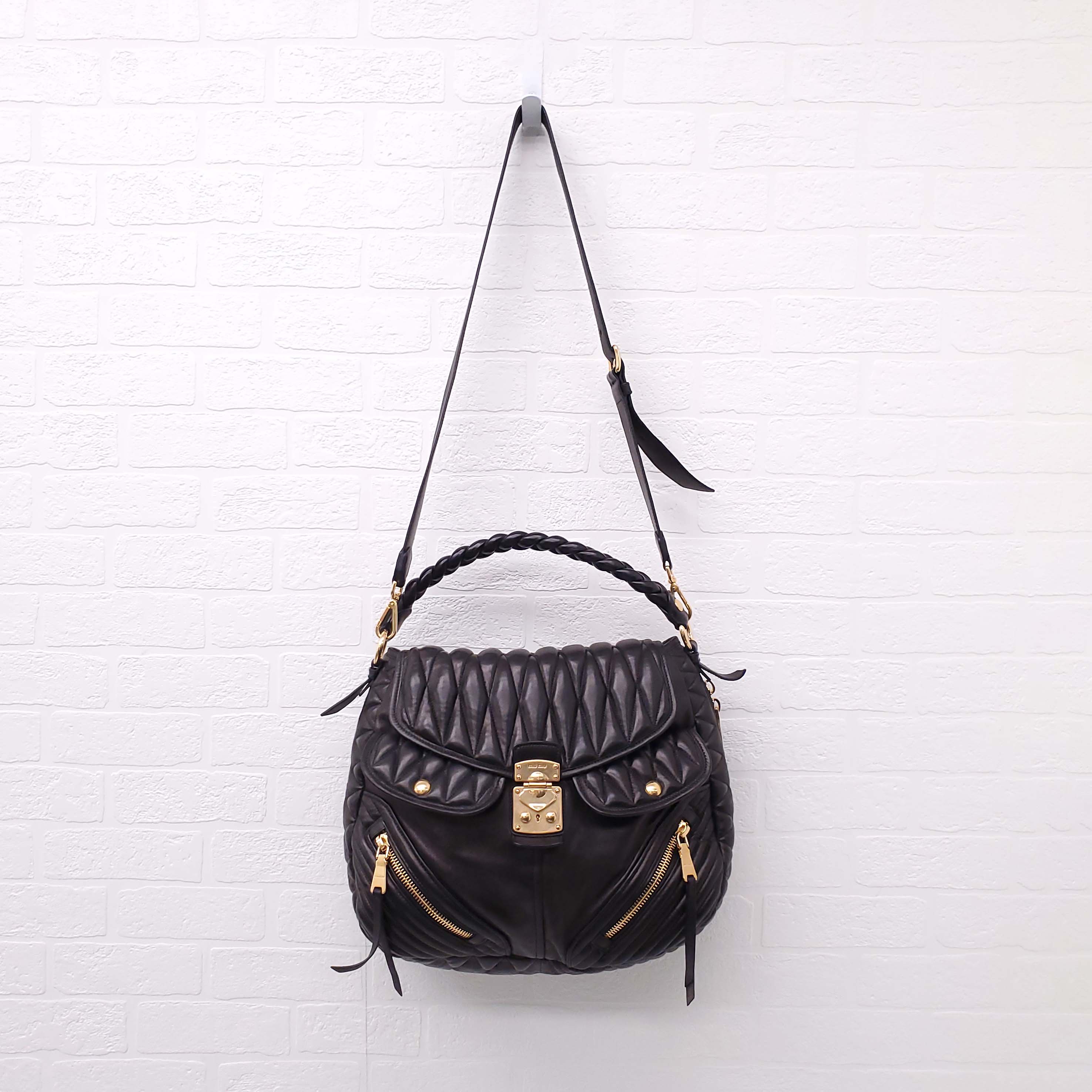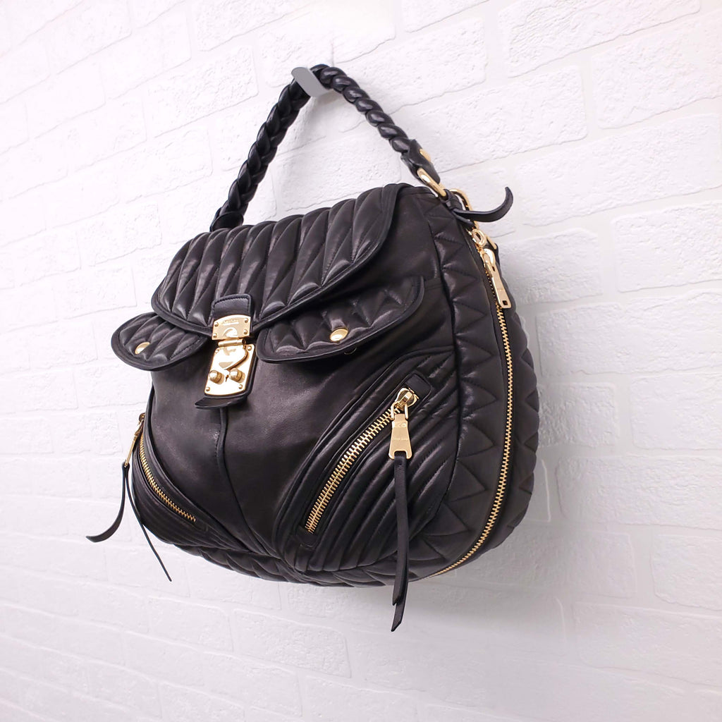 MIU MIU BLACK LEATHER BRAIDED 'MATELASSE' CROSSBODY BAG