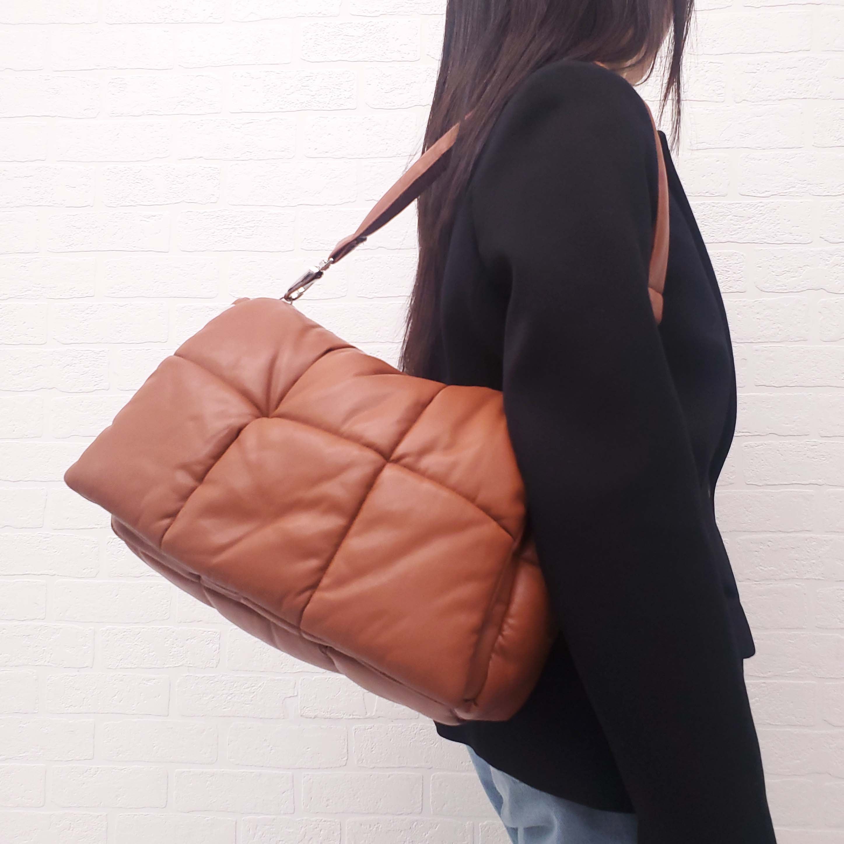 STAND STUDIO COGNAC VEGAN LEATHER PUFFER SHOULDER BAG