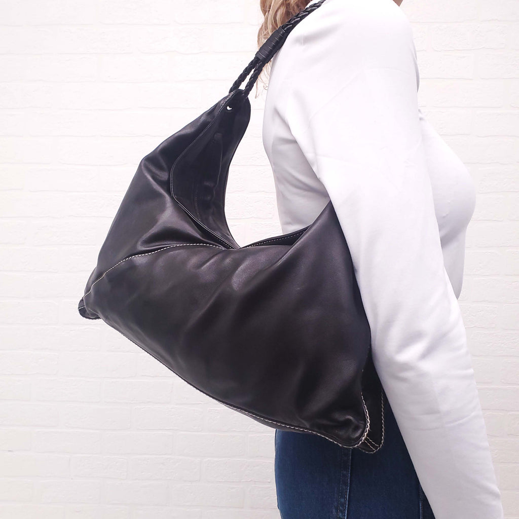 BOTTEGA VENETA BLACK INTRECCIATO LEATHER HOBO BAG