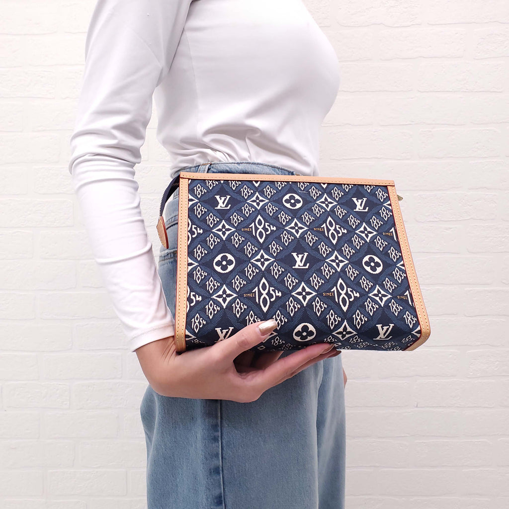 LOUIS VUITTON NAVY MONOGRAM 'JACQUARED SINCE 1854' CLUTCH