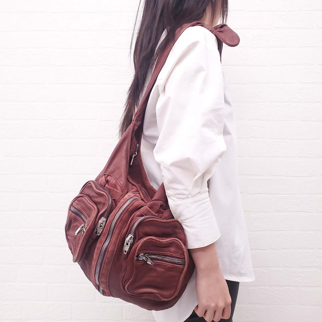 ALEXANDER WANG BURGUNDY LEATHER SHOULDER BAG WITH SILVER ZIPPERS