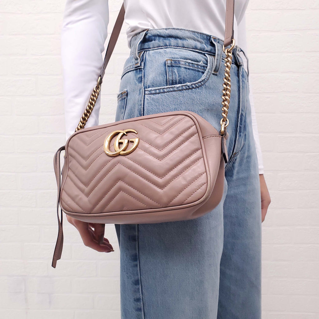 GUCCI BLUSH PINK LEATHER 'MARMONT' CAMERA BAG