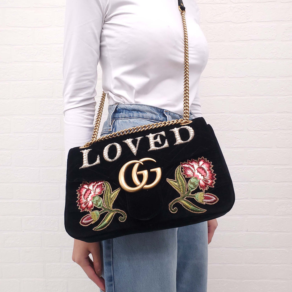 GUCCI VELVET WITH PEARL LOVED AND EMBROIDERY 'MARMONT' BAG