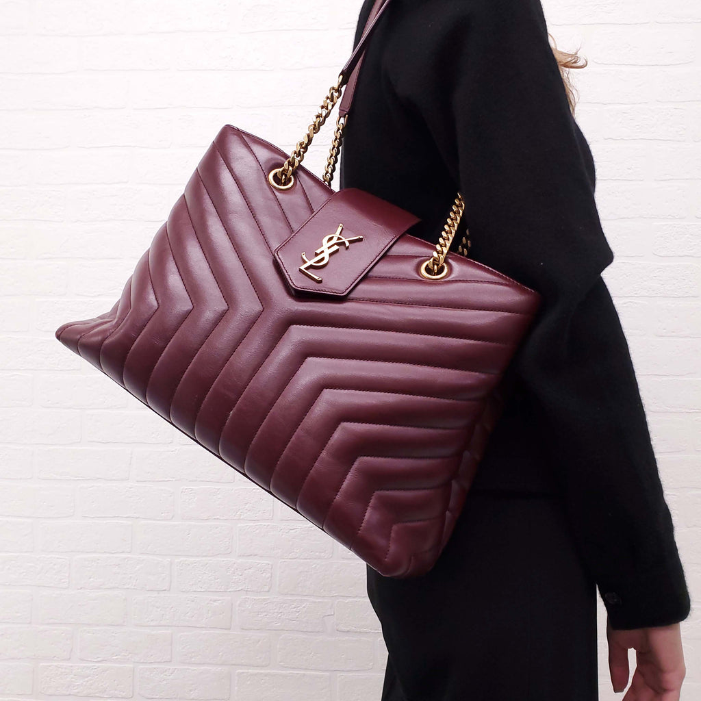 SAINT LAURENT BURGUNDY 'MATELASSE LOULOU SHOPPER' BAG