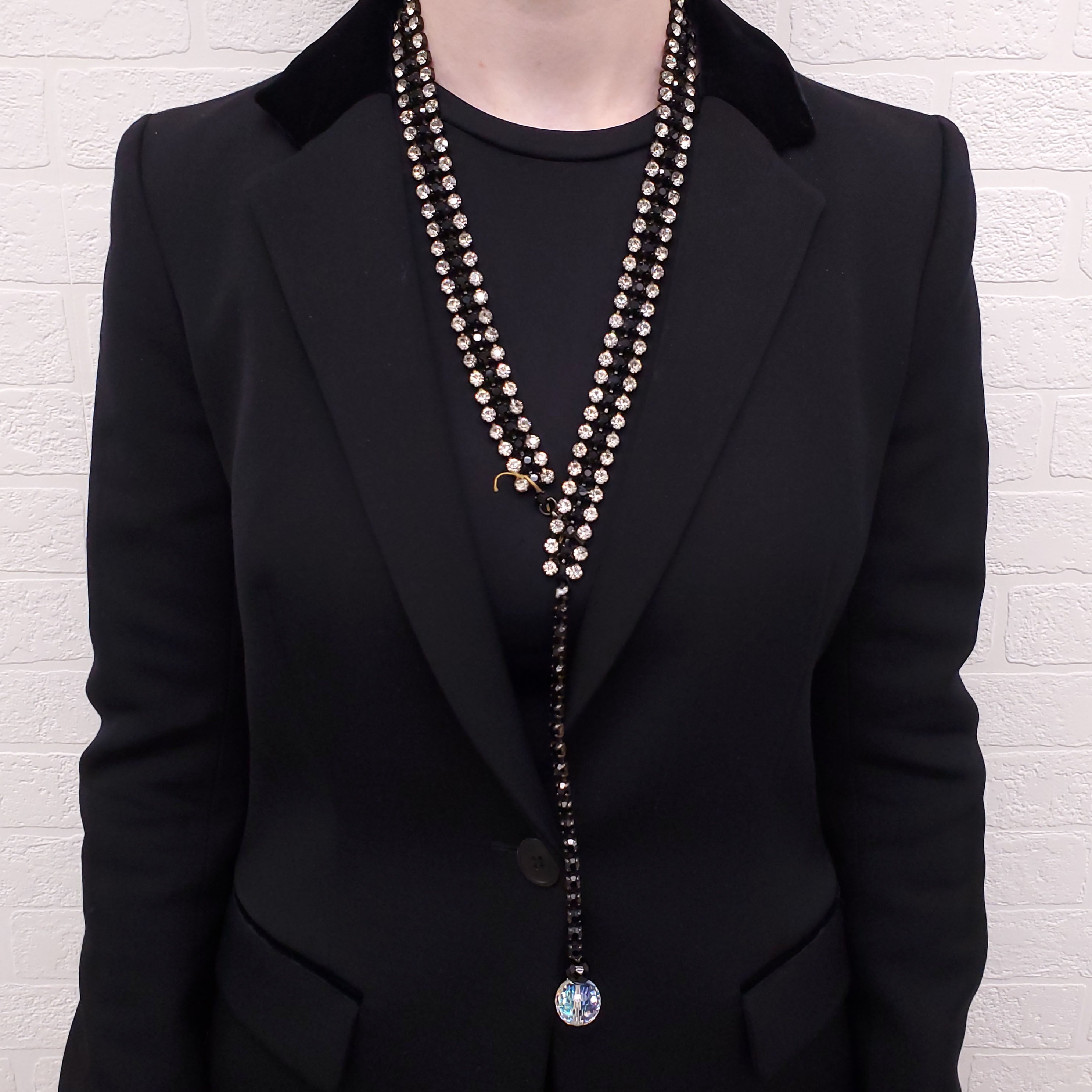 YVES SAINT LAURENT BLACK AND DIAMANTE NECKLACE WITH CRYSTAL BEAD