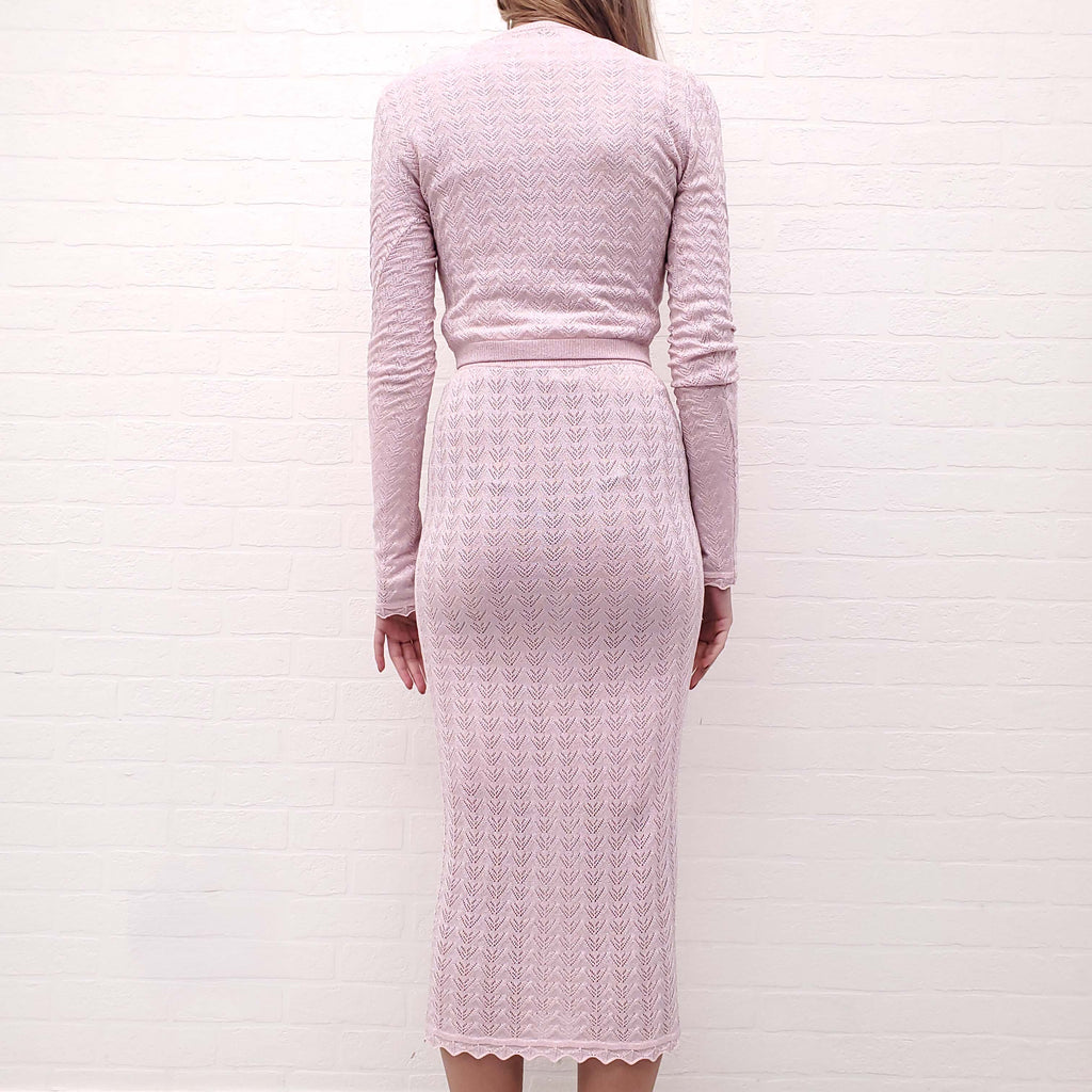 ALESSANDRA RICH PINK SHIMMER SWEATER SET WITH CRYSTAL BUTTONS - SIZE S
