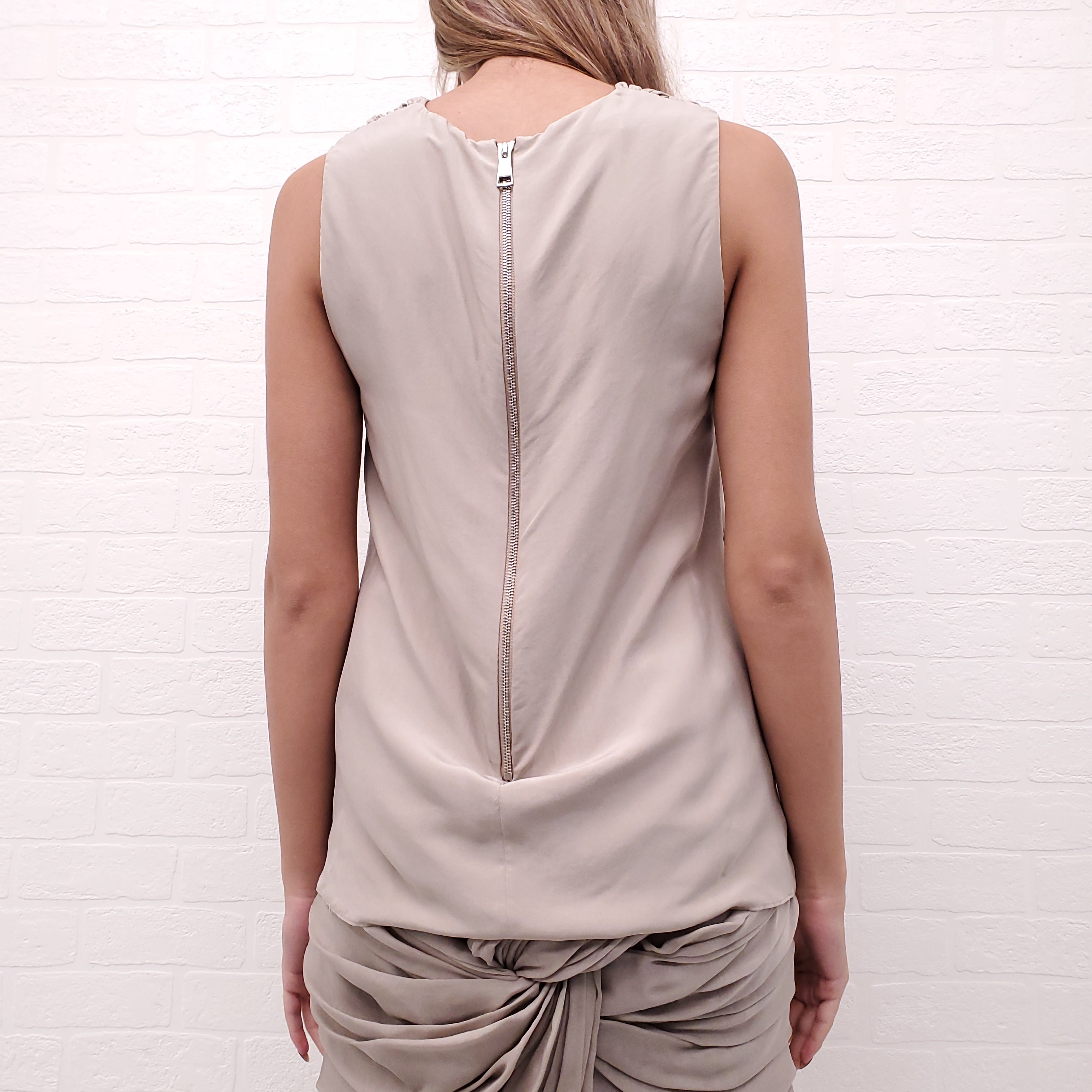 BURBERRY PROSUM TAUPE SILK ROUCHED SKIRT SET - SIZE 42