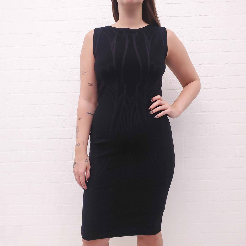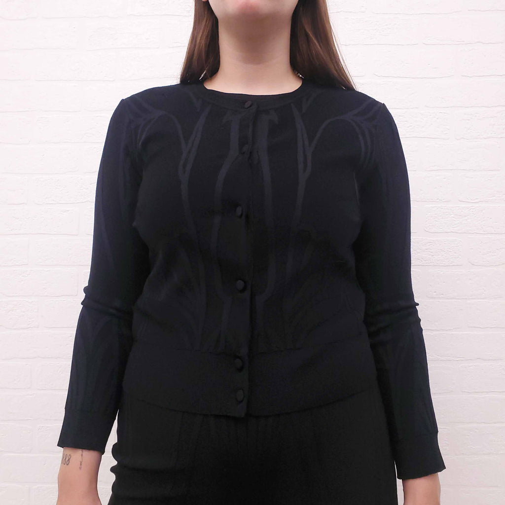 GUCCI BLACK PATTERNED CARDIGAN SET WITH MATCHING DRESS - SIZE L