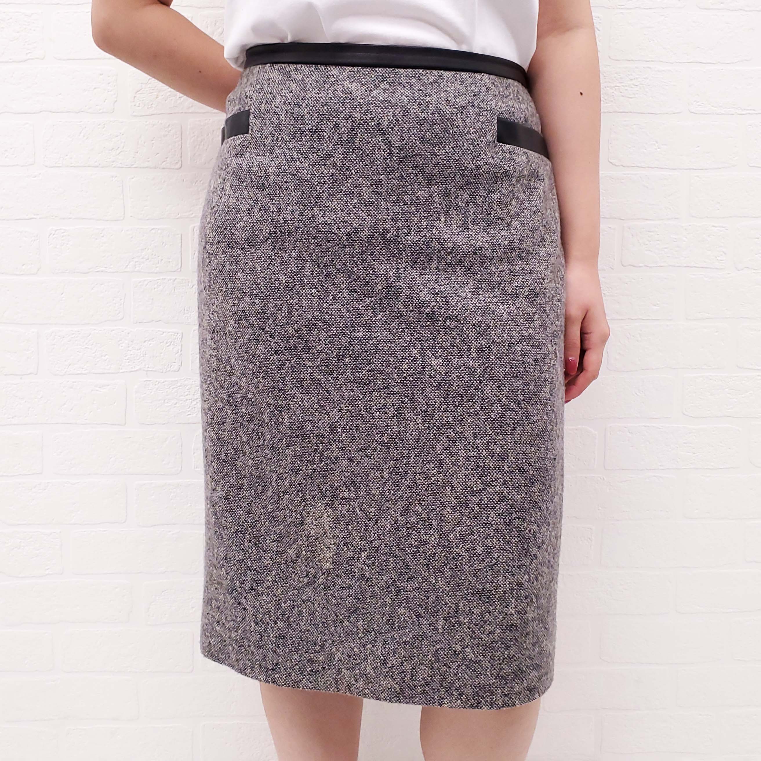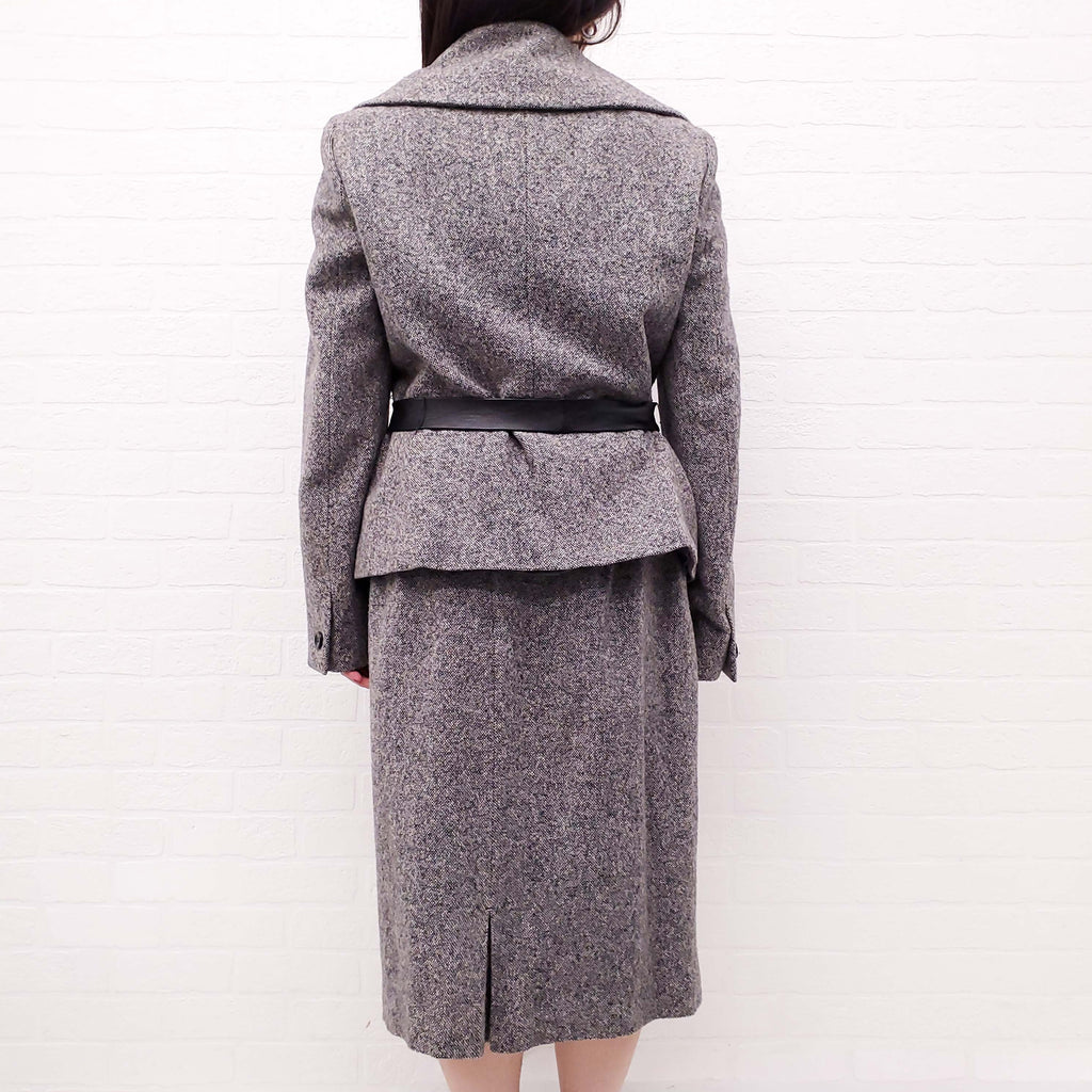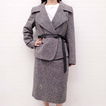 MAX MARA SALT AND PEPPER SUIT WITH LEATHER BELT - SIZE 14