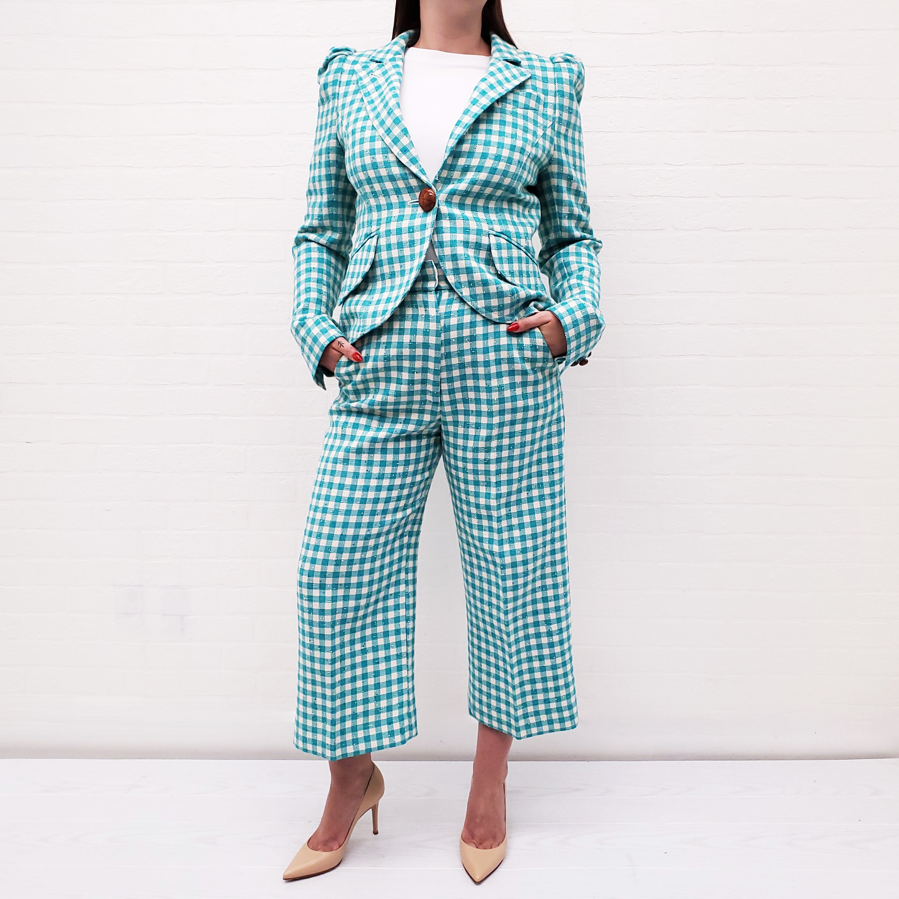 SMYTHE TURQUOISE PLAID SUIT - SIZE 8/6