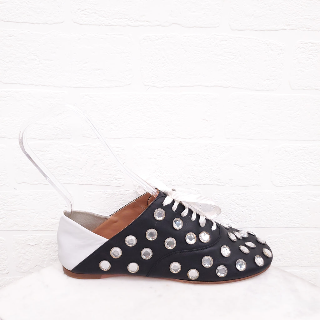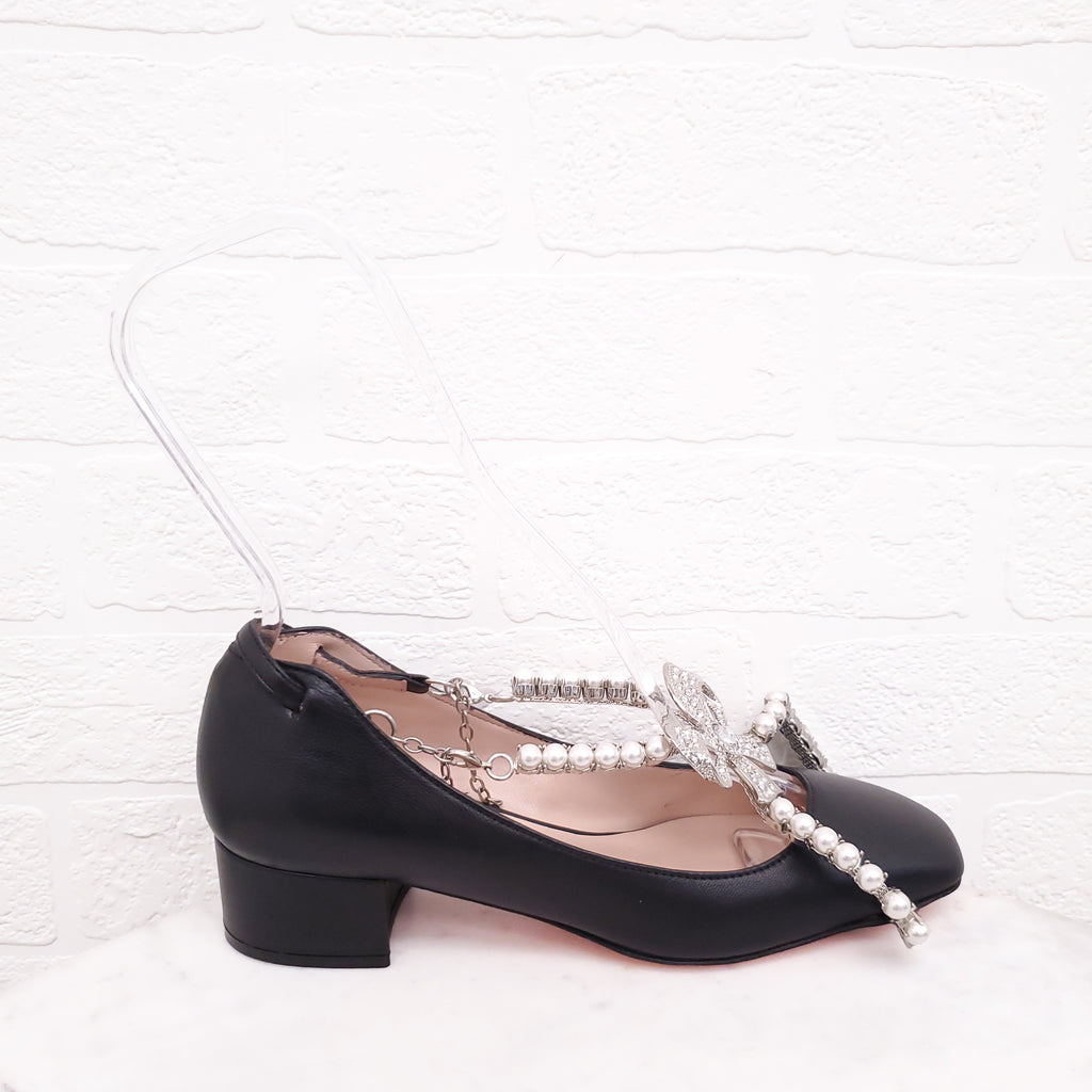 MACH & MACH DOUBLE EMBELLISHED BOW CRYSTAL LEATHER MULES - SIZE 41