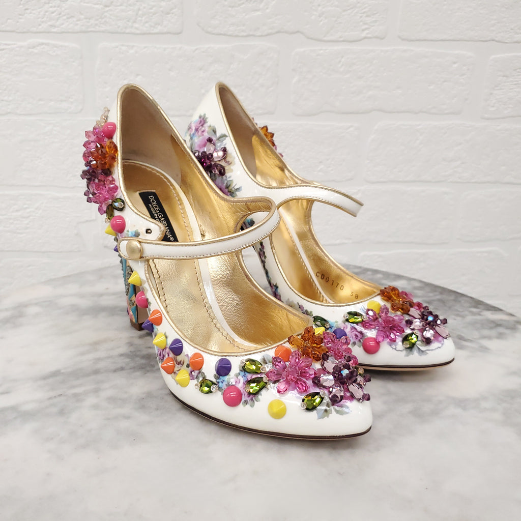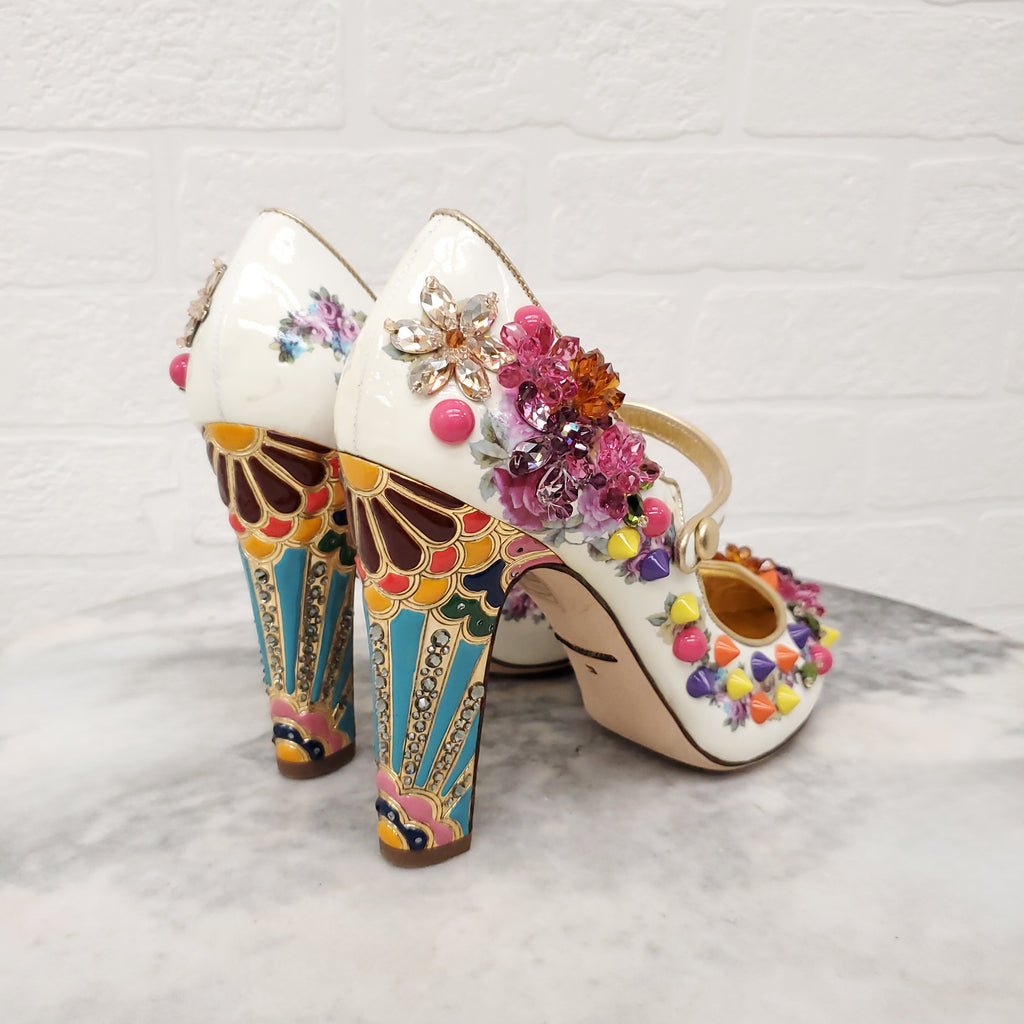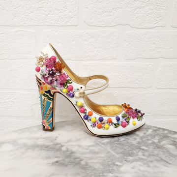DOLCE & GABBANA FLORAL BEADED HEELS WITH STUDS - SIZE 38