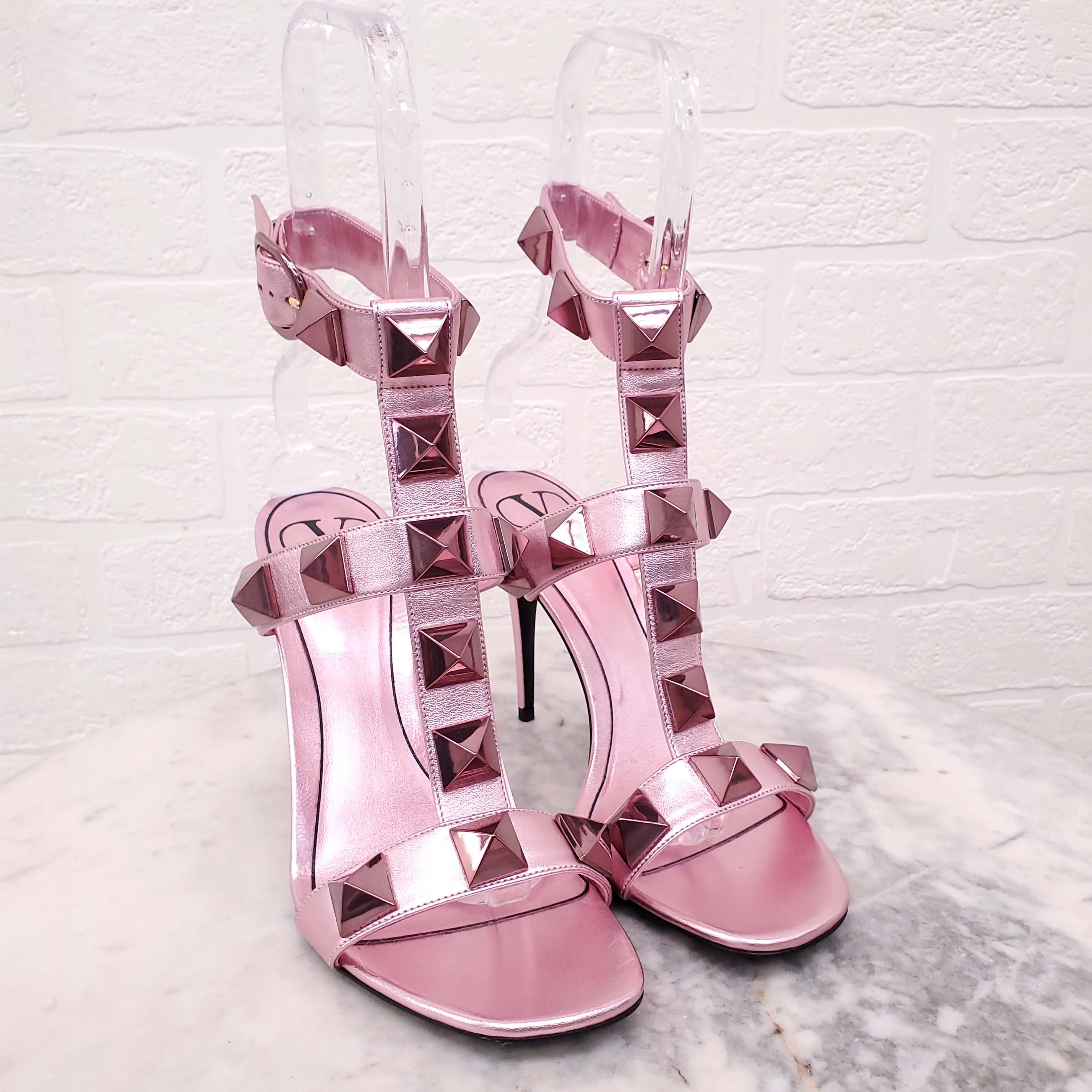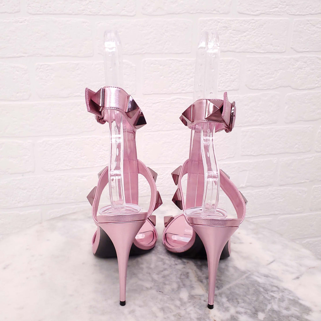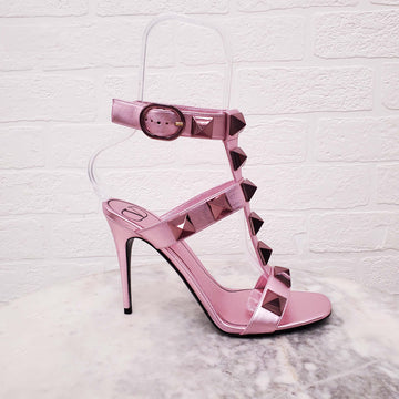 VALENTINO METALLIC PINK ROMAN ROCKSTUD HEELS - SIZE 38