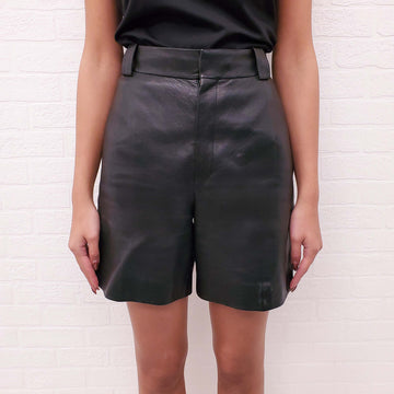 SAINT LAURENT BLACK LEATHER SHORTS - SIZE 36