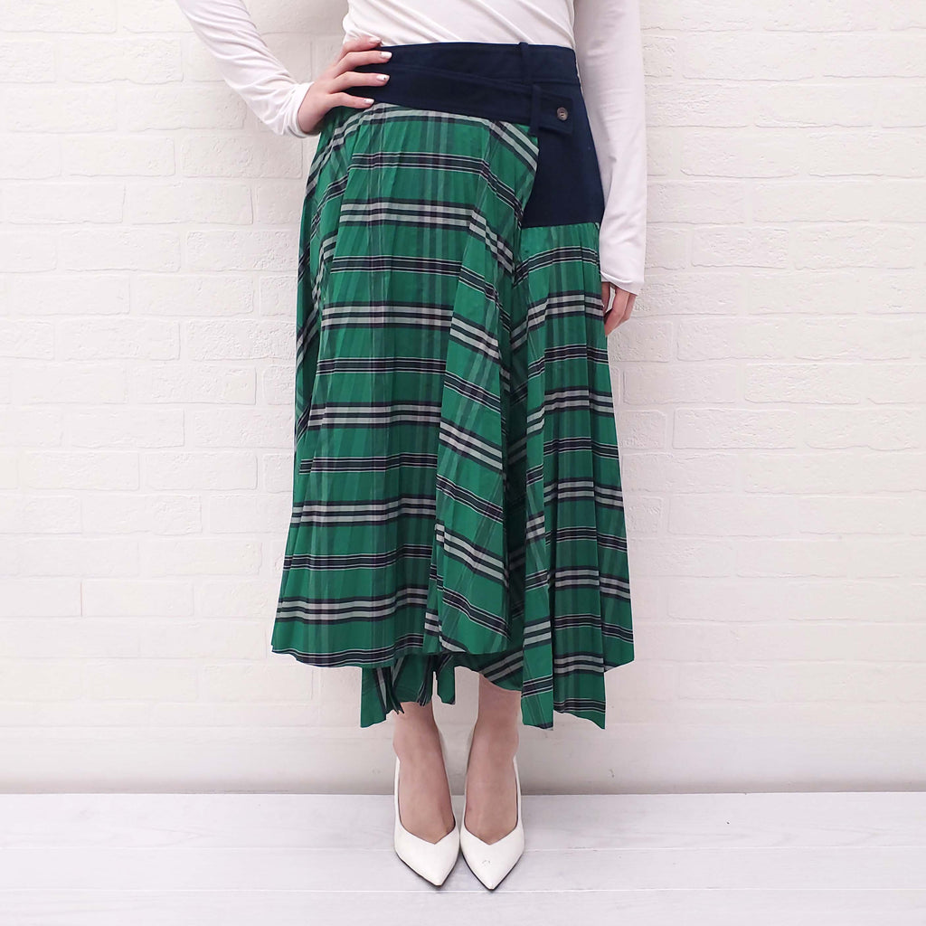 CÉDRIC CHARLIER GREEN AND NAVY PLAID PLEATED NYLON AND COTTON SKIRT - SIZE 10