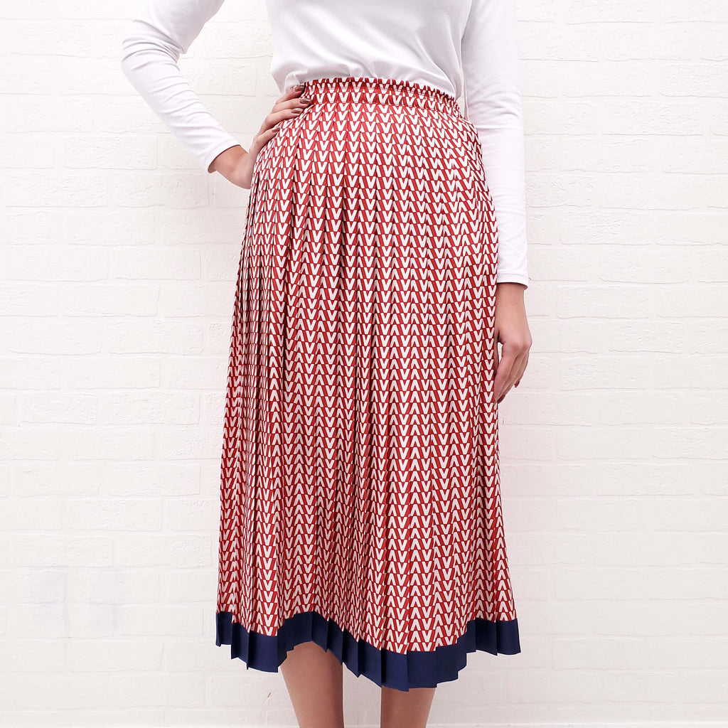 VALENTINO RED PLEATED LOGO SKIRT - SIZE 2
