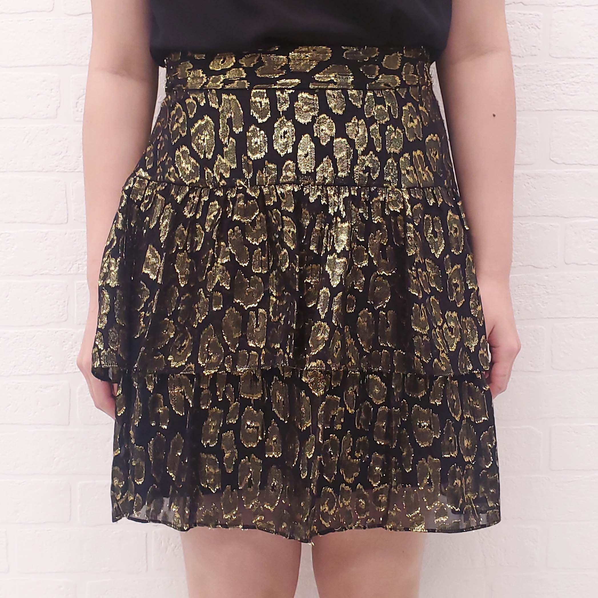 A.L.C. BLACK AND GOLD METALLIC LEOPARD SKIRT - SIZE 10