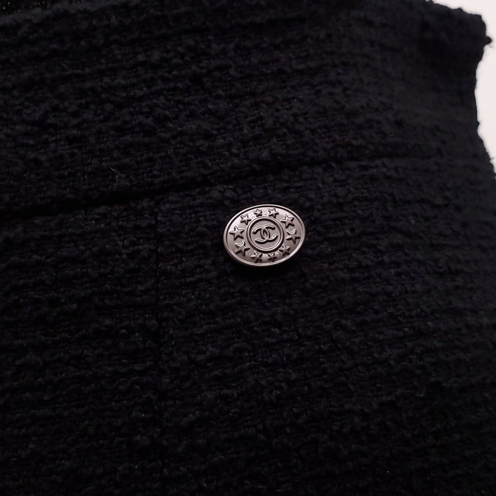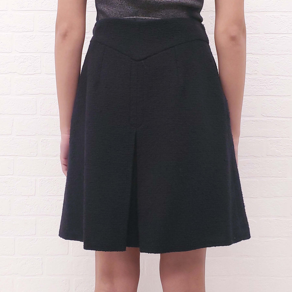 CHANEL BLACK TWEED PLEATED SKIRT WITH LOGO - SIZE 40