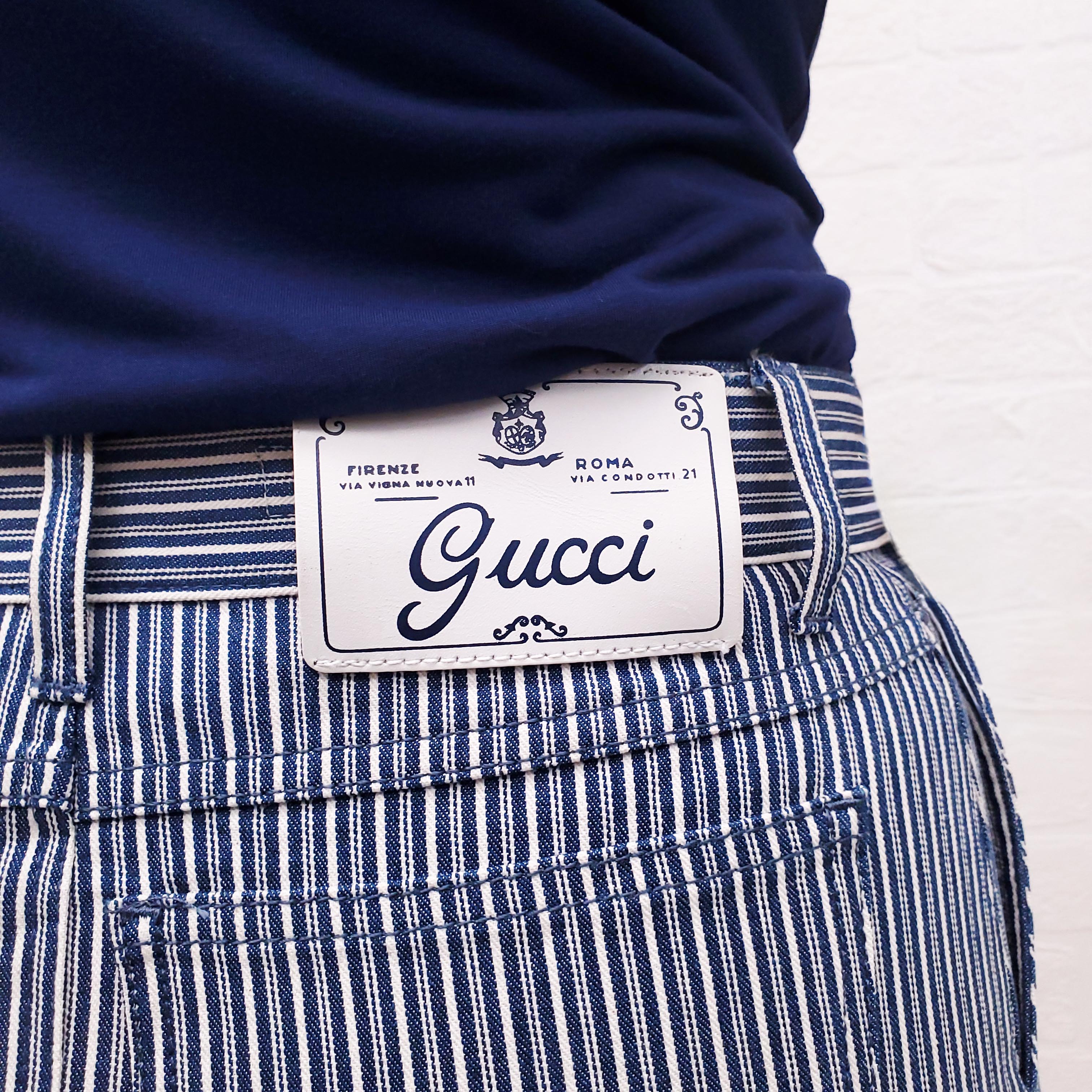 GUCCI BLUE AND WHITE STRIPED DENIM MINI SKIRT - SIZE 40