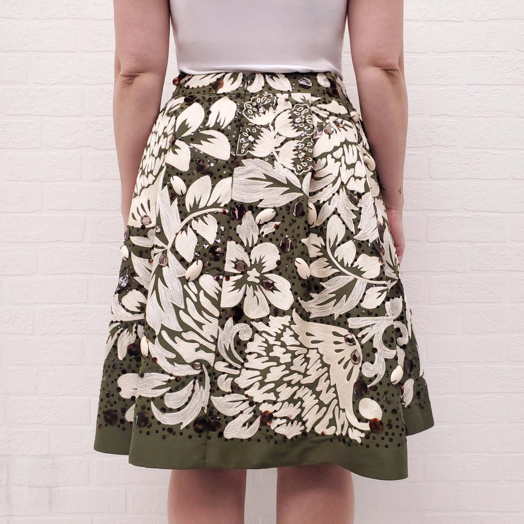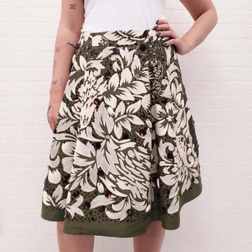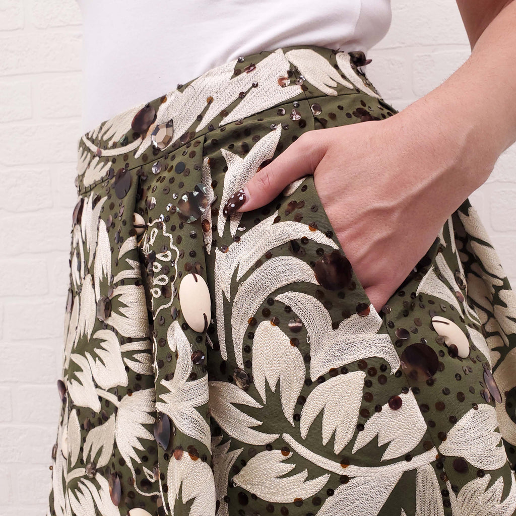 OSCAR DE LA RENTA GREEN SEQUIN AND BROWN STONE SKIRT - SIZE 10