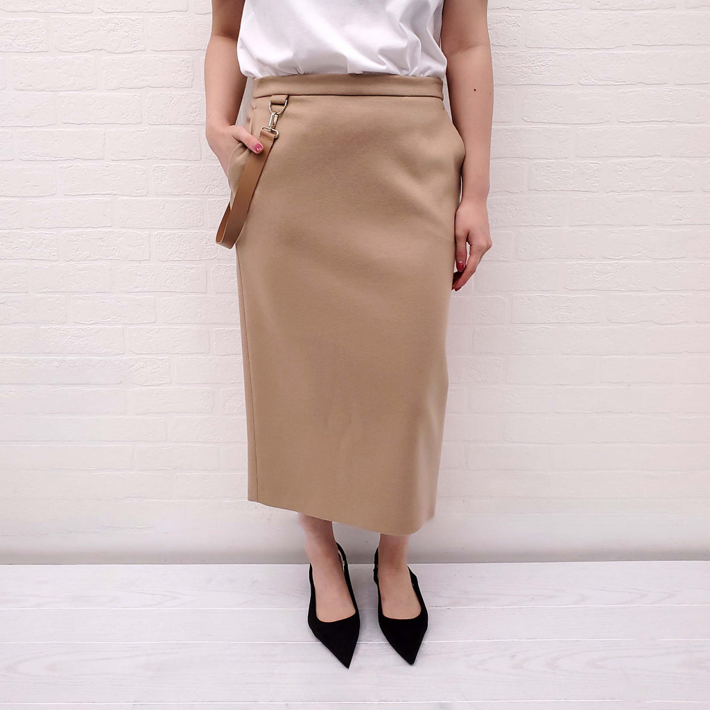 MAX MARA CAMEL PENCIL SKIRT WITH SIDE BELT - SIZE 8