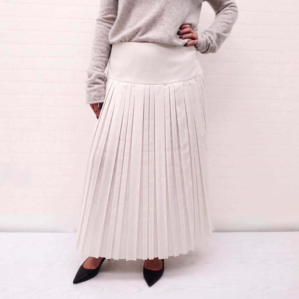 THE ROW CREAM PLEATED COTTON BLEND 'MAGDITA' SKIRT - SIZE 14