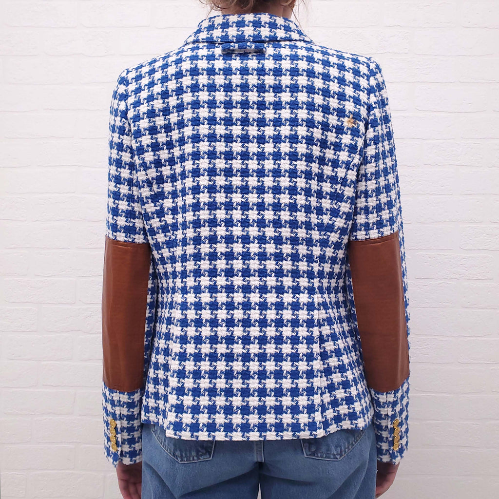 SMYTHE BLUE AND WHITE TWEED BLAZER WITH LEATHER ELBOW PATCHES - SIZE 10