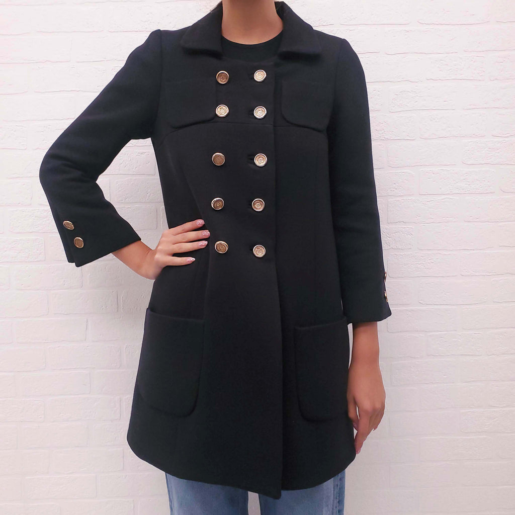 SMYTHE BLACK DOUBLE BREASTED COAT WITH GOLD BUTTONS - SIZE 6