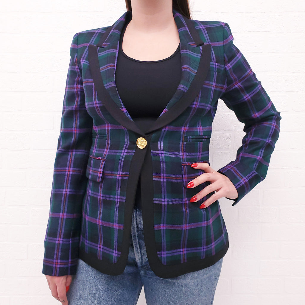 SMYTHE GREEN AND PURPLE PLAID BLAZER - SIZE 8
