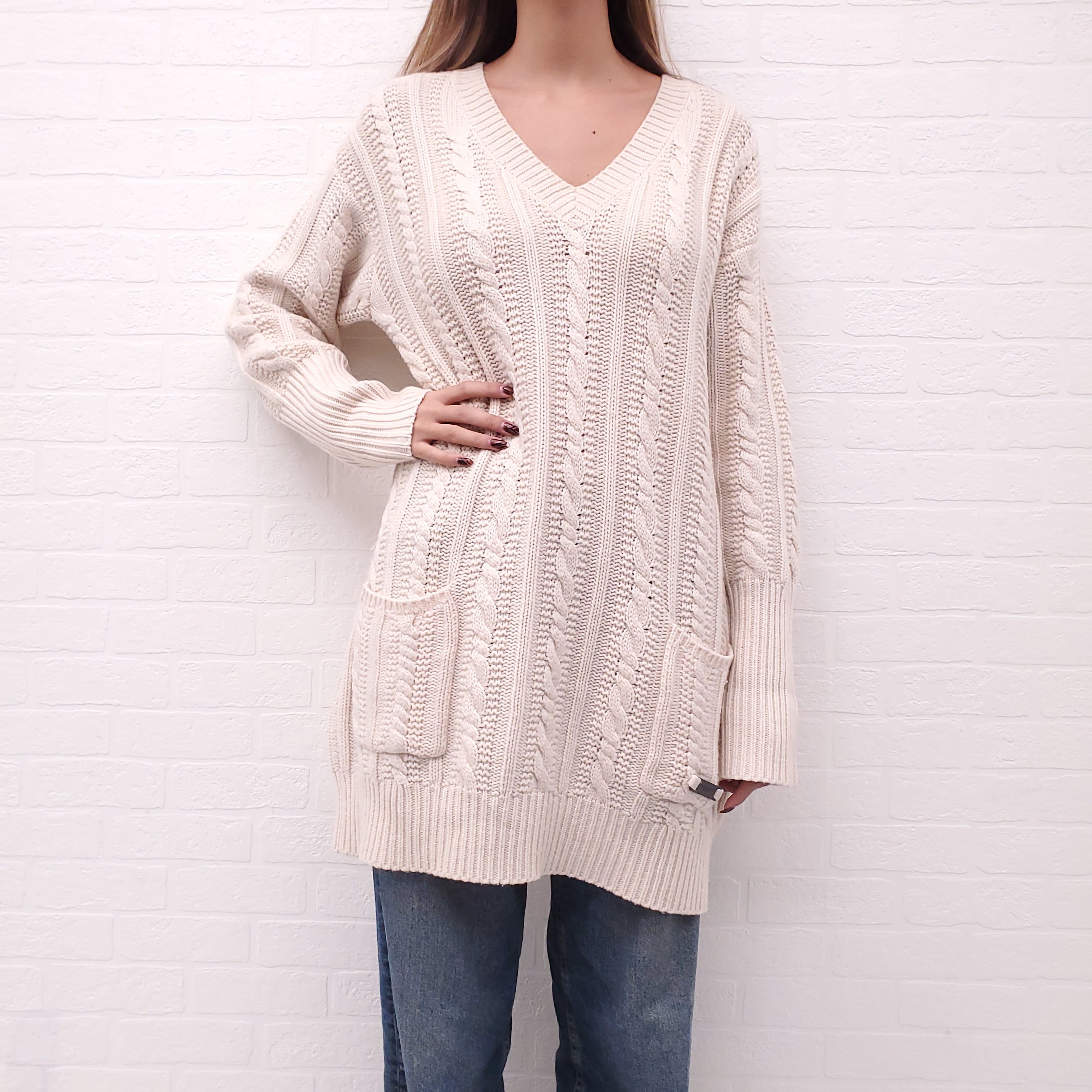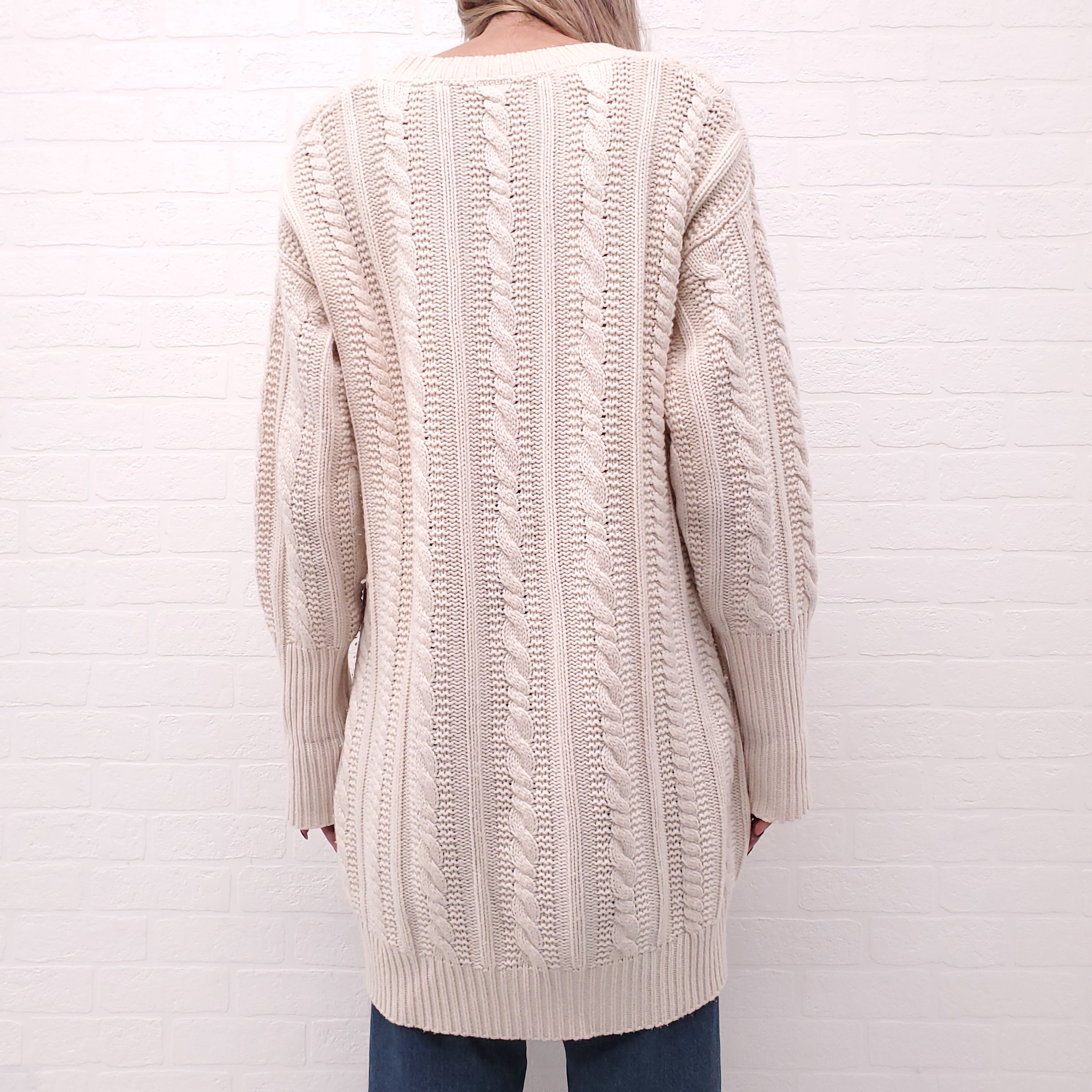 BURBERRY CREAM TUNIC SWEATER WITH LOGO - SIZE L