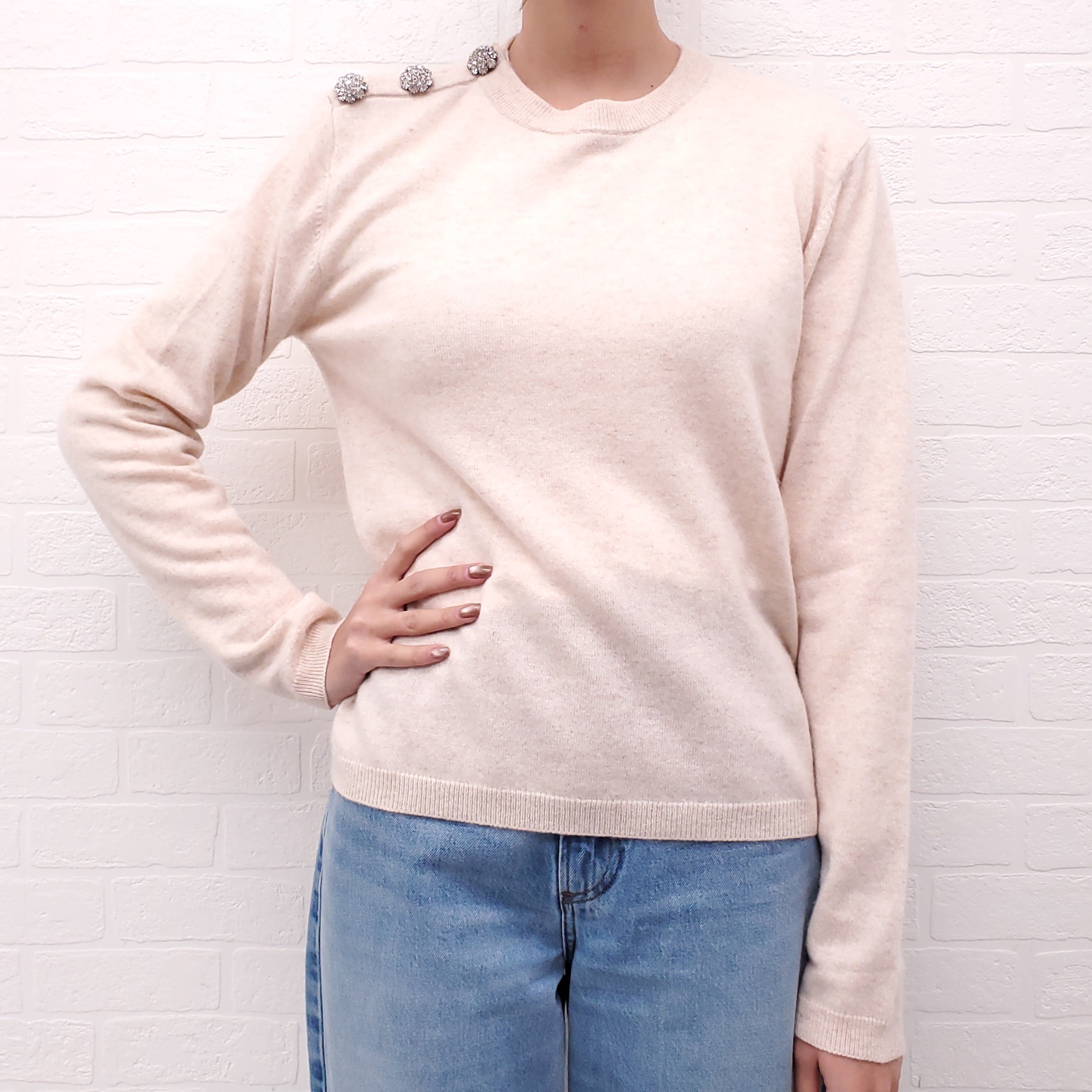 GANNI BRAZILIAN SAND CASHMERE SWEATER WITH CRYSTAL BUTTONS - SIZE L