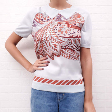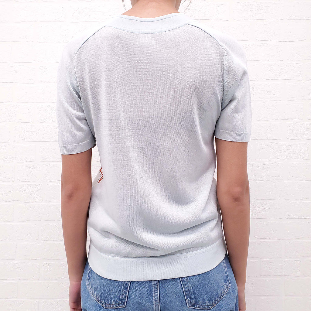 HERMÈS LIGHT BLUE SHORT SLEEVE SILK PATTERNED SWEATER - SIZE 36