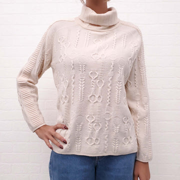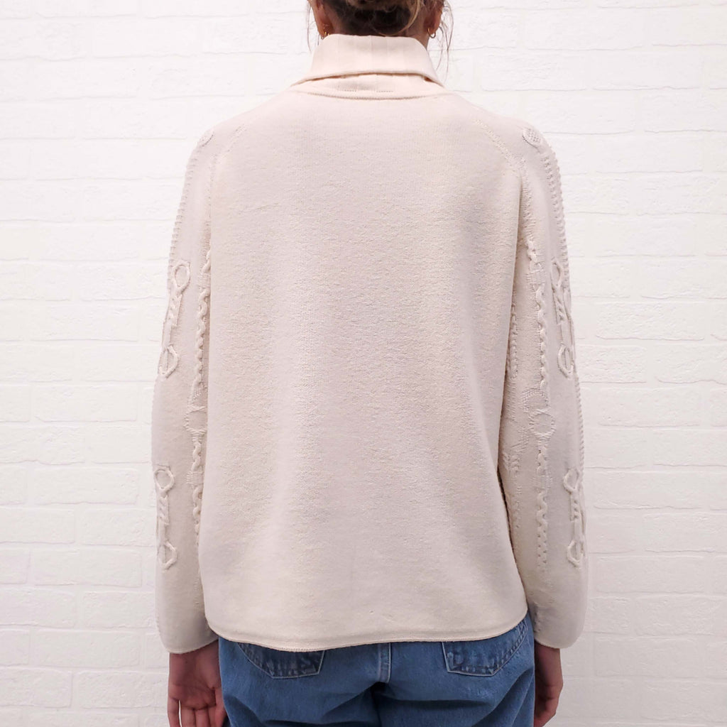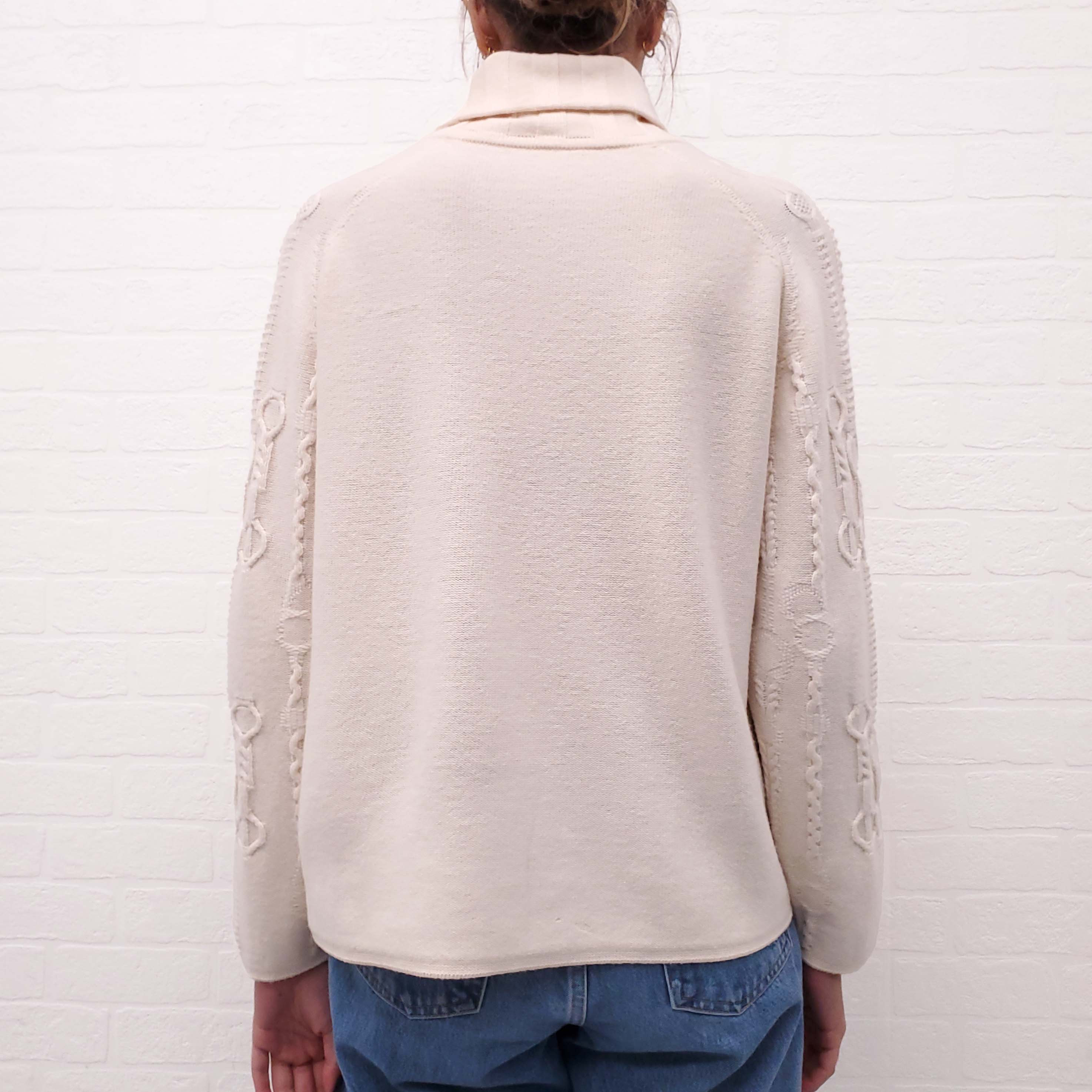 HERMÈS CREAM OVERSIZED CHAIN LINK TURTLENECK SWEATER - SIZE 34